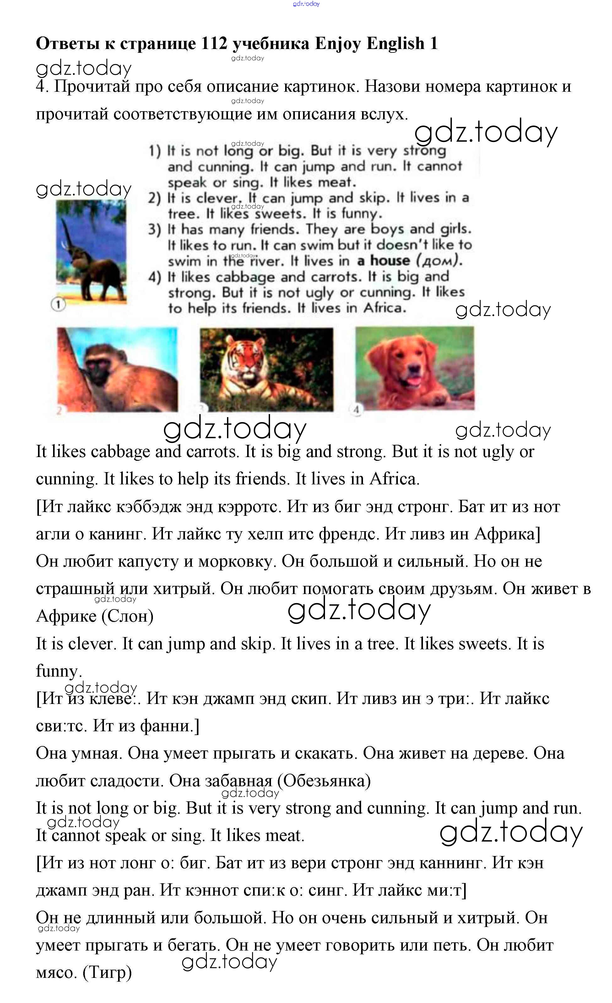 Ответы к Страницы (решение)  112 Учебнику по Английскому языку для 1 класса Биболетова, Добрынина  Титул Enjoy English 2010