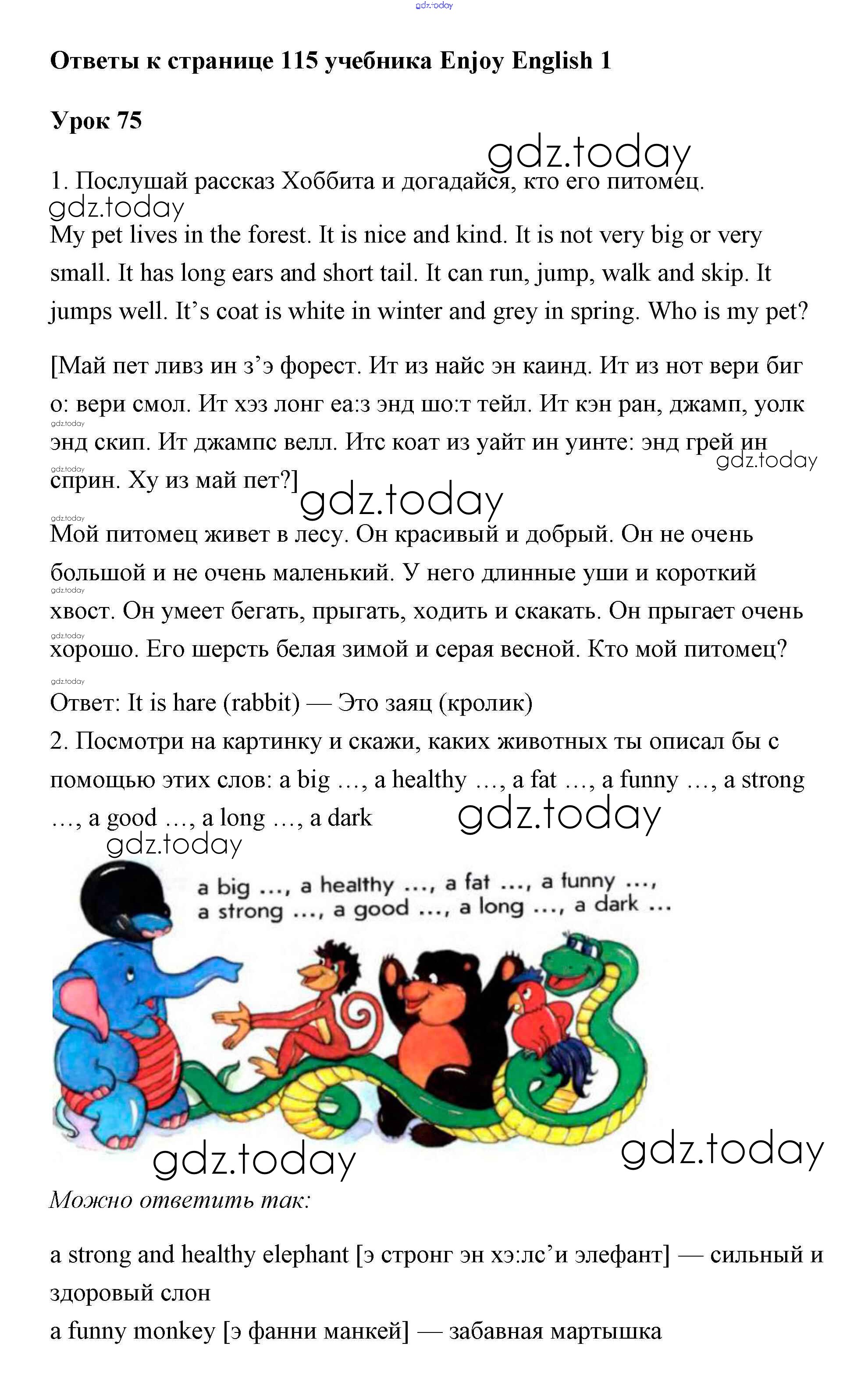 Ответы к Страницы (решение)  115 Учебнику по Английскому языку для 1 класса Биболетова, Добрынина  Титул Enjoy English 2010