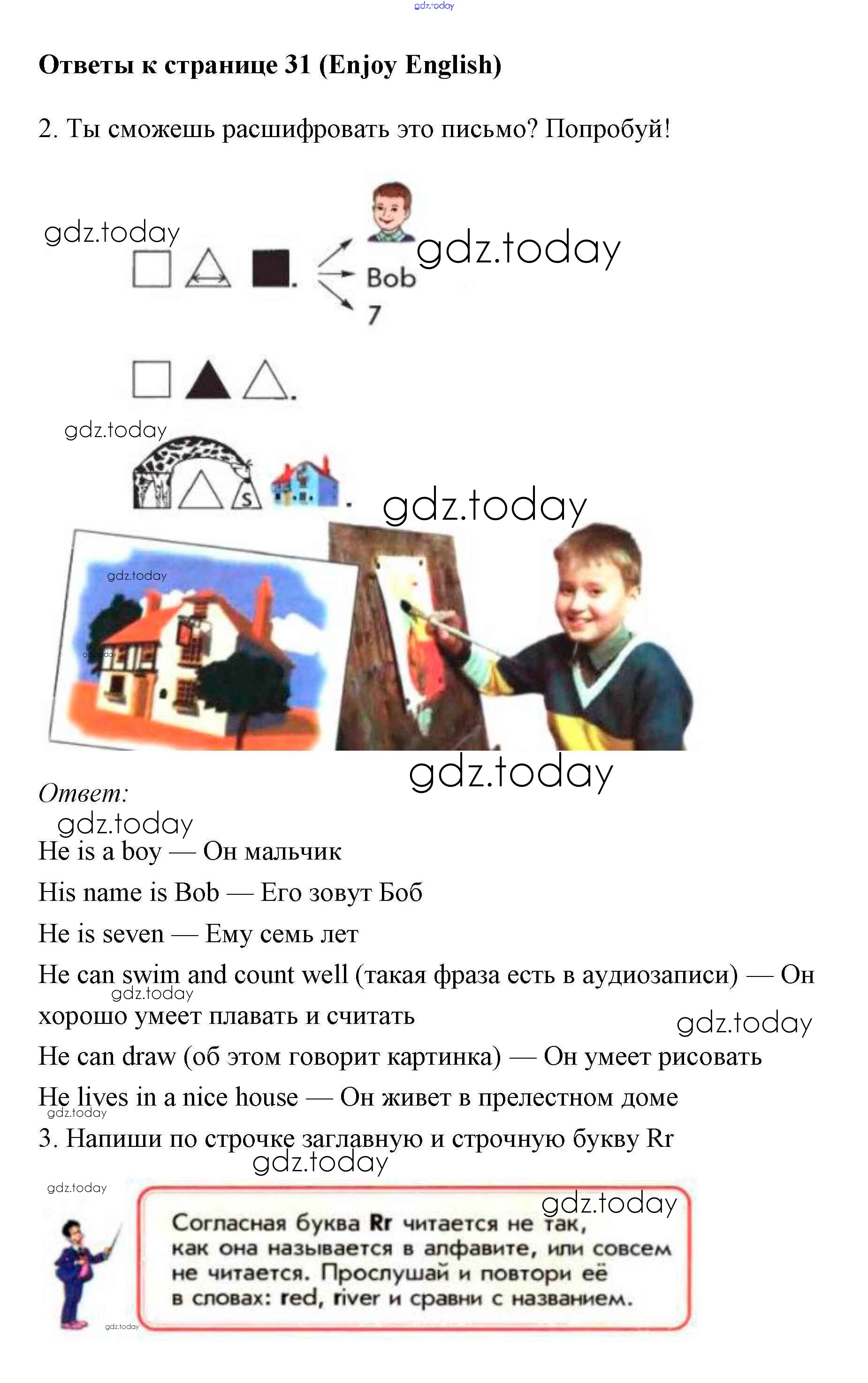 Ответы к Страницы (решение)  31 Учебнику по Английскому языку для 1 класса Биболетова, Добрынина  Титул Enjoy English 2010