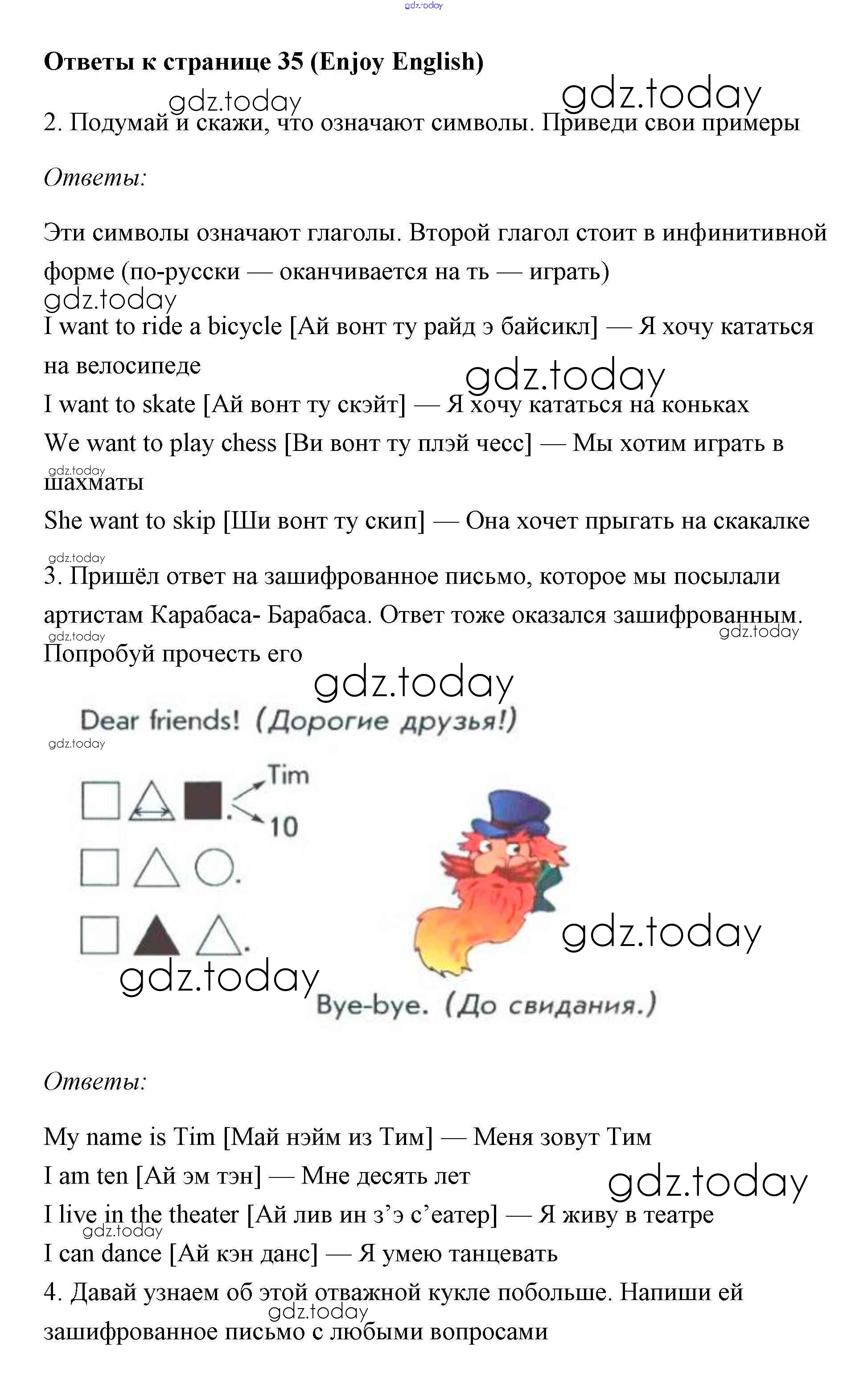 Ответы к Страницы (решение)  35 Учебнику по Английскому языку для 1 класса Биболетова, Добрынина  Титул Enjoy English 2010