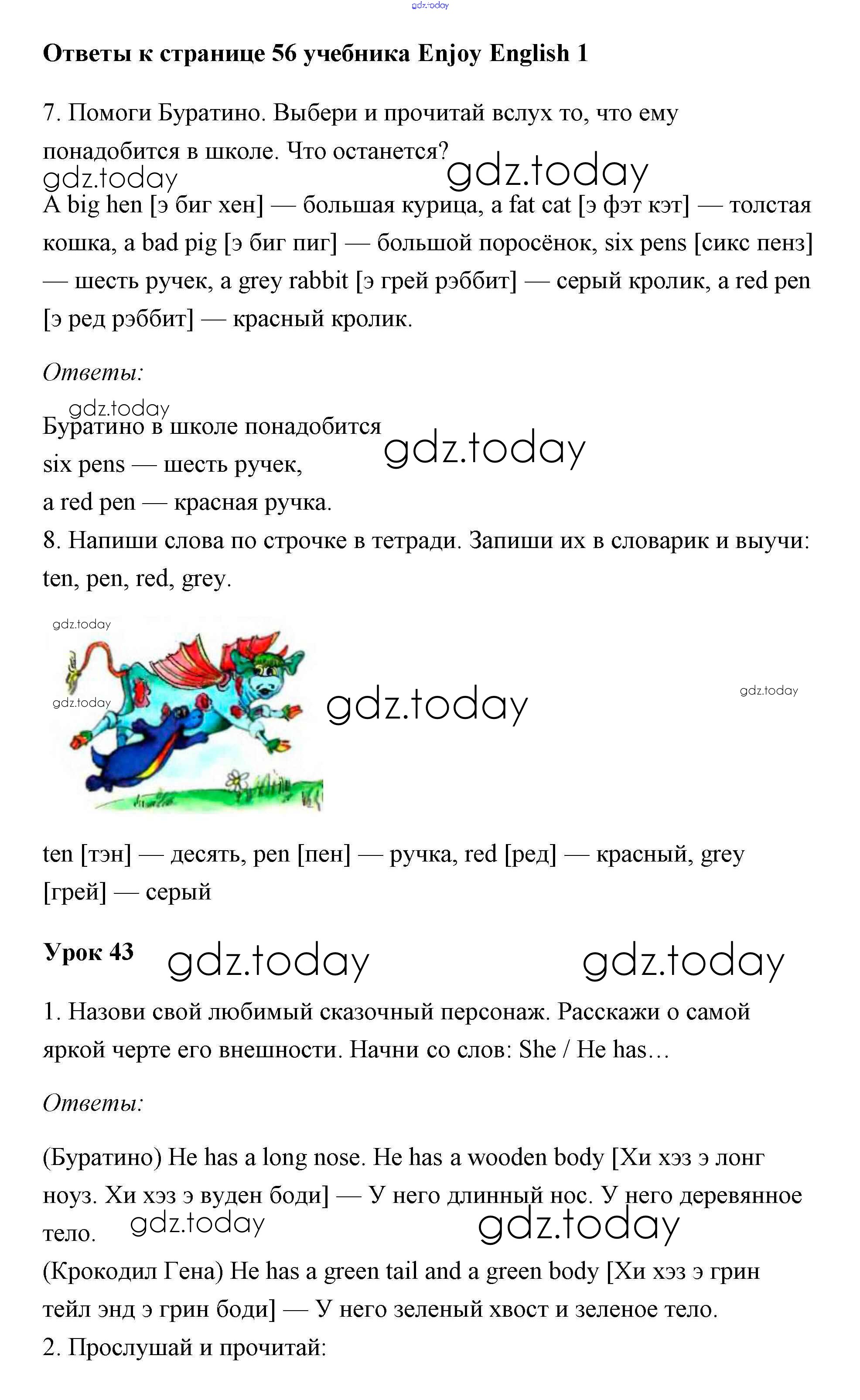 Ответы к Страницы (решение)  56 Учебнику по Английскому языку для 1 класса Биболетова, Добрынина  Титул Enjoy English 2010