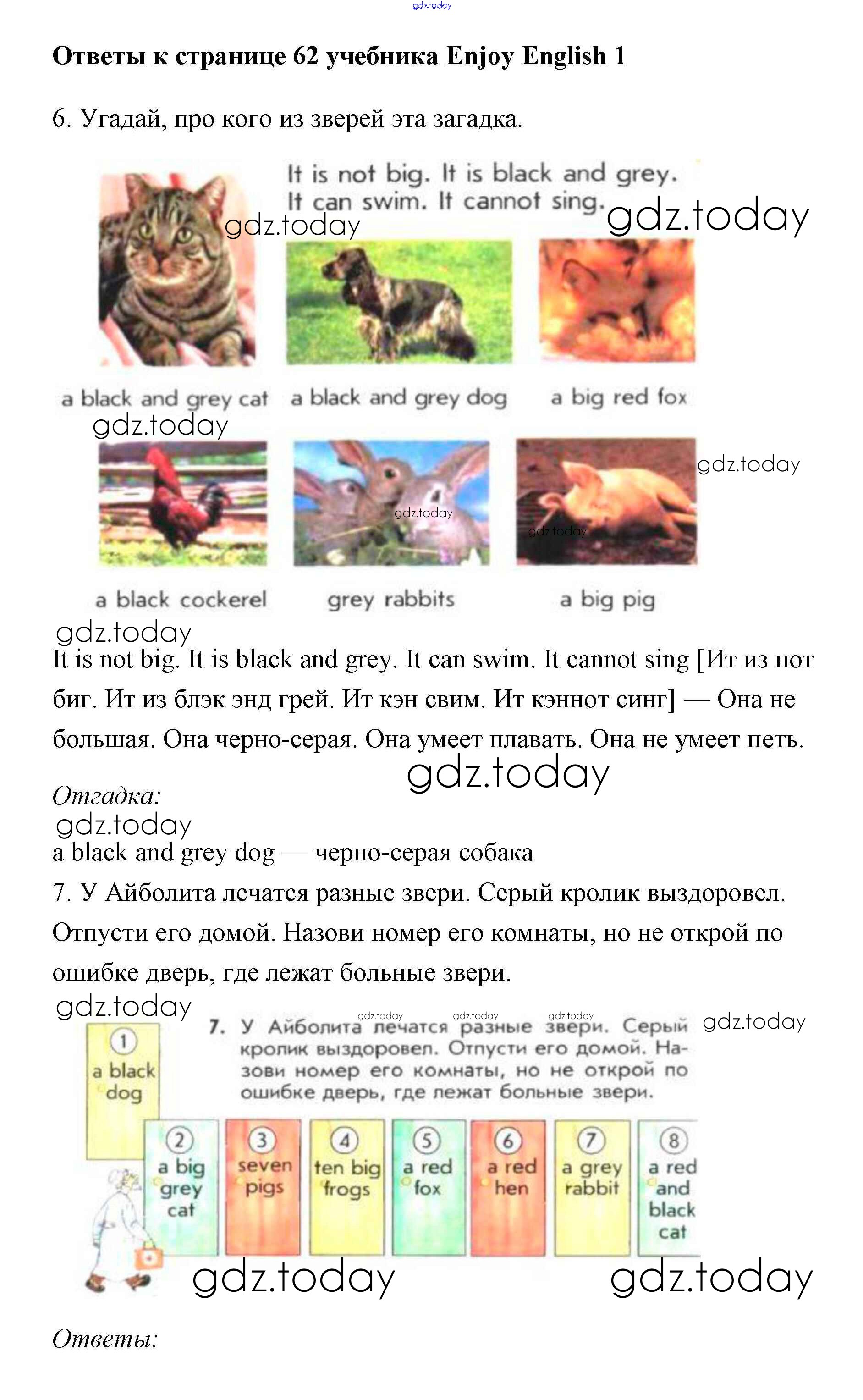 Ответы к Страницы (решение)  62 Учебнику по Английскому языку для 1 класса Биболетова, Добрынина  Титул Enjoy English 2010