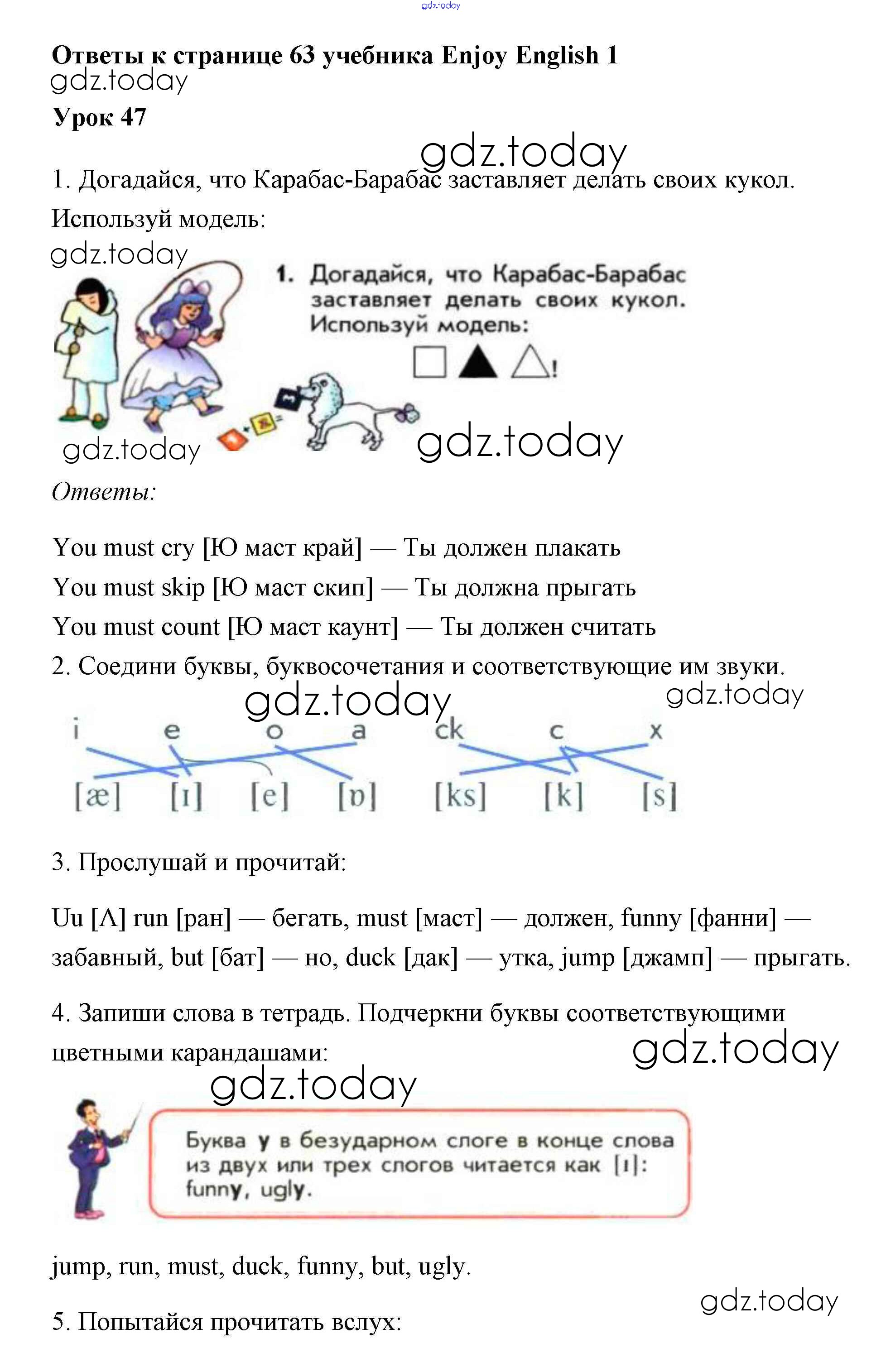 Ответы к Страницы (решение)  63 Учебнику по Английскому языку для 1 класса Биболетова, Добрынина  Титул Enjoy English 2010
