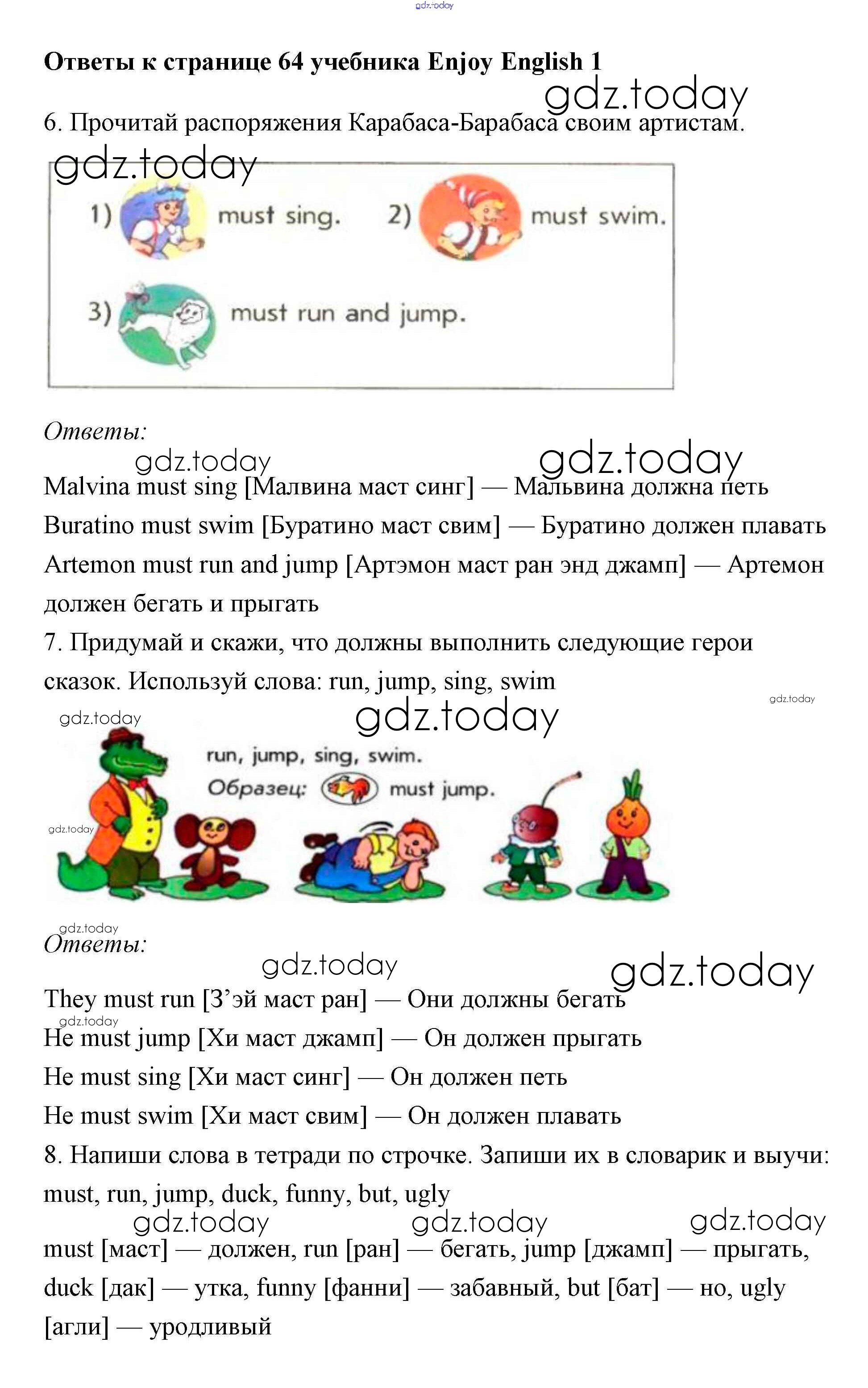 Ответы к Страницы (решение)  64 Учебнику по Английскому языку для 1 класса Биболетова, Добрынина  Титул Enjoy English 2010