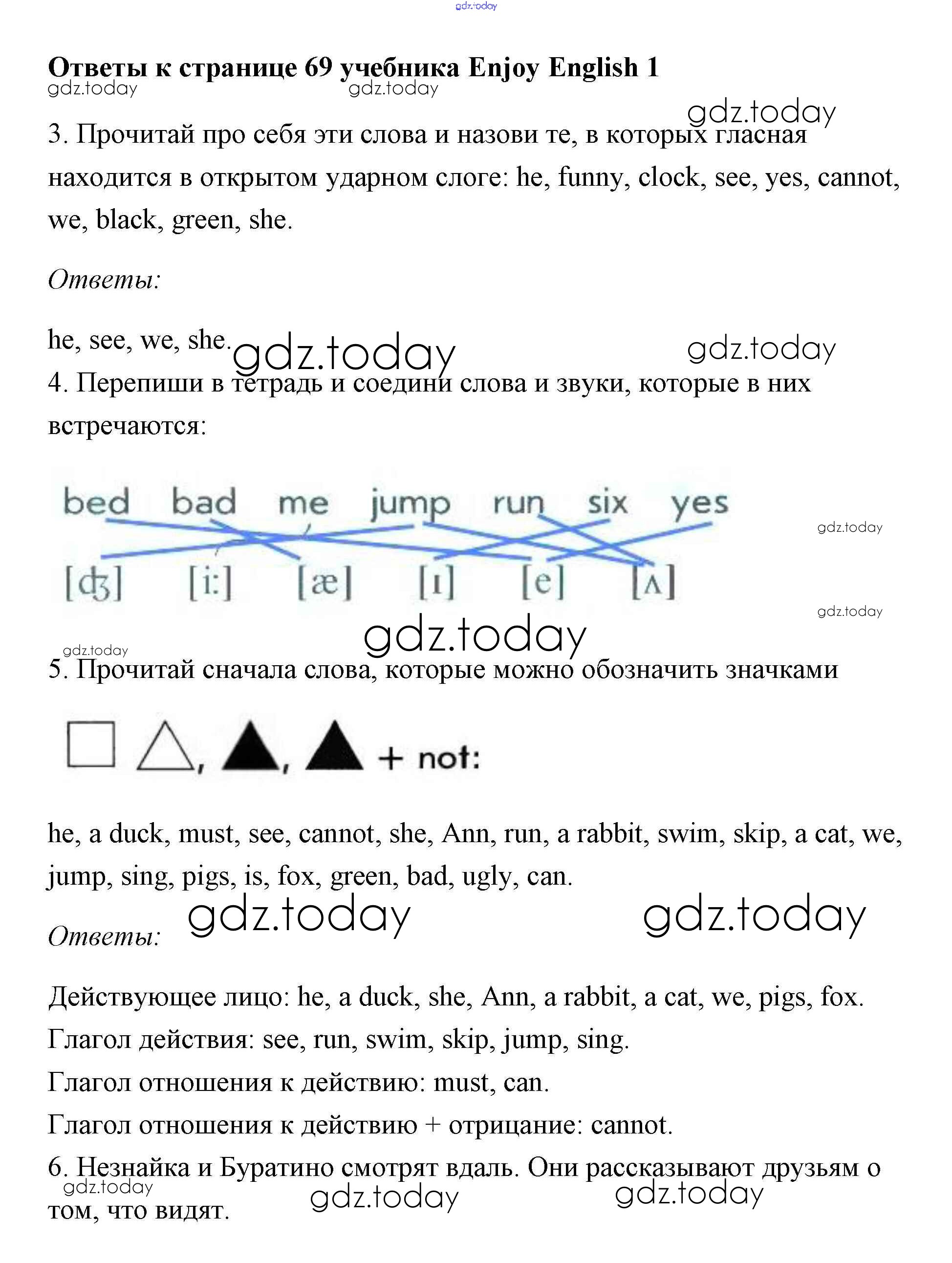 На страницах сайта gdz.today вы найдете учебный и вспомогательный материал, направленный на улучшения знаний школьной программы. ГДЗ - онлайн мир знаний Страницы (решение)  69 Учебнику по Английскому языку для 1 класса Биболетова, Добрынина  Титул Enjoy English 2010