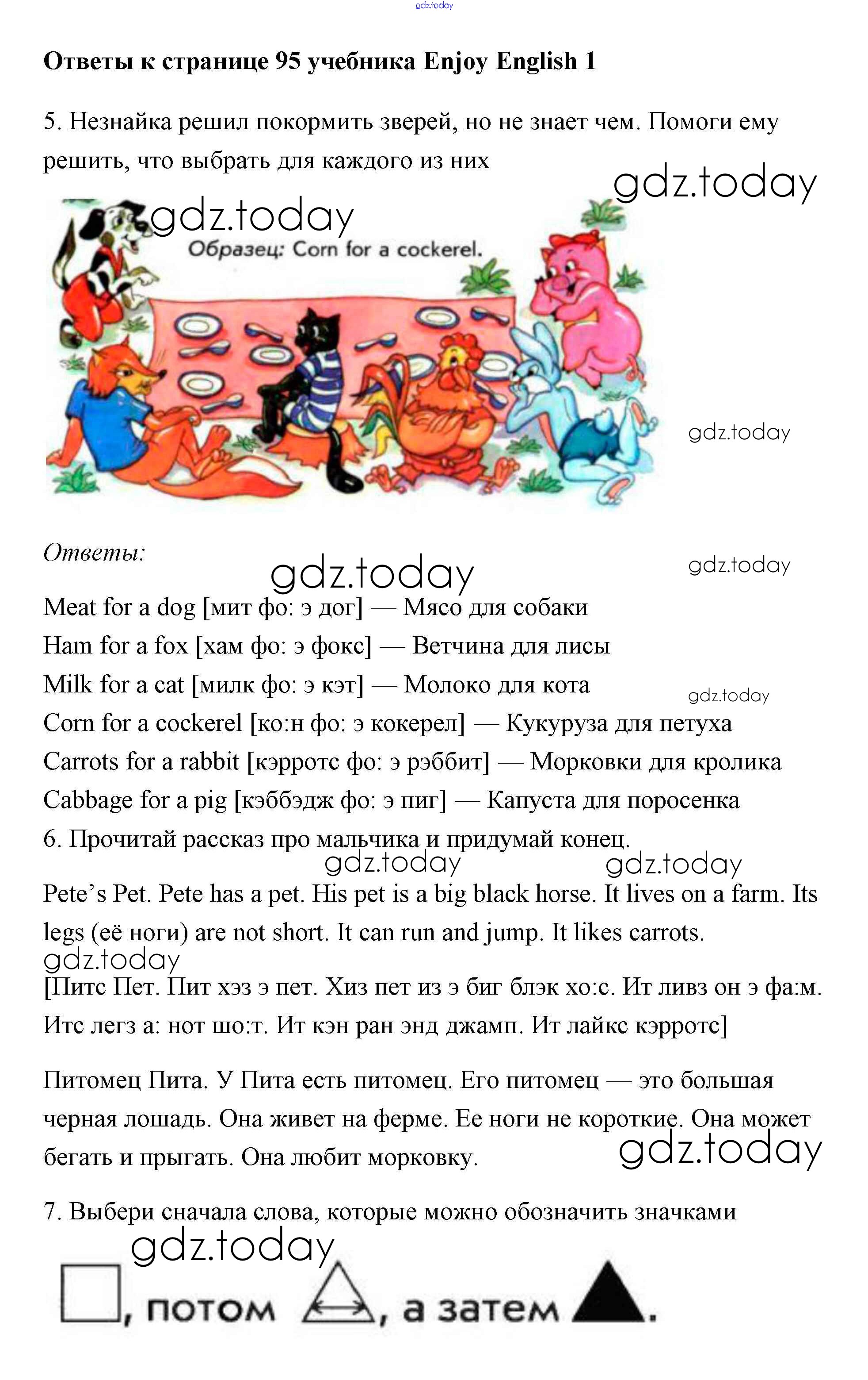Ответы к Страницы (решение)  95 Учебнику по Английскому языку для 1 класса Биболетова, Добрынина  Титул Enjoy English 2010
