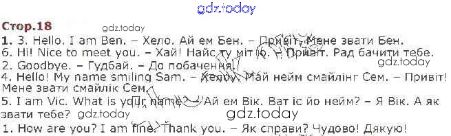 Ответы к Рішення до Unit 1. Hello, friends! (Сторінки) 18 Учебнику по Английскому языку для 1 класса Карпюк Видавництво Астон, Видавництво Астон 2018, 2012