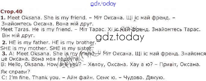 Ответы к Рішення до Unit 3. Family and friends (Сторінки) 40 Учебнику по Английскому языку для 1 класса Карпюк Видавництво Астон, Видавництво Астон 2018, 2012