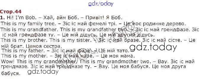 Ответы к Рішення до Unit 3. Family and friends (Сторінки) 44 Учебнику по Английскому языку для 1 класса Карпюк Видавництво Астон, Видавництво Астон 2018, 2012