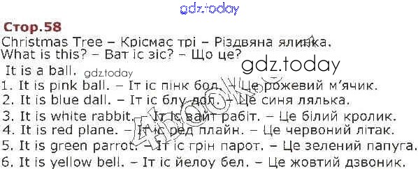 Ответы к Рішення до Unit 5. My toys (Сторінки) 58 Учебнику по Английскому языку для 1 класса Карпюк Видавництво Астон, Видавництво Астон 2018, 2012