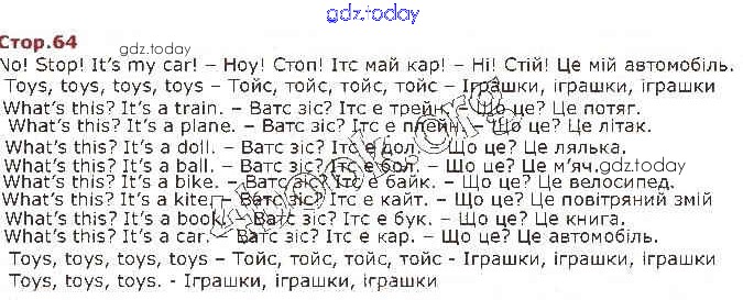 Ответы к Рішення до Unit 5. My toys (Сторінки) 64 Учебнику по Английскому языку для 1 класса Карпюк Видавництво Астон, Видавництво Астон 2018, 2012