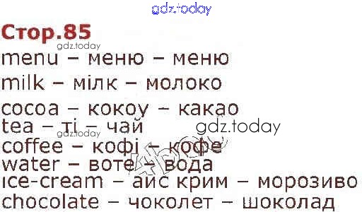 Ответы к Рішення до Unit 7. My food (Сторінки) 85 Учебнику по Английскому языку для 1 класса Карпюк Видавництво Астон, Видавництво Астон 2018, 2012