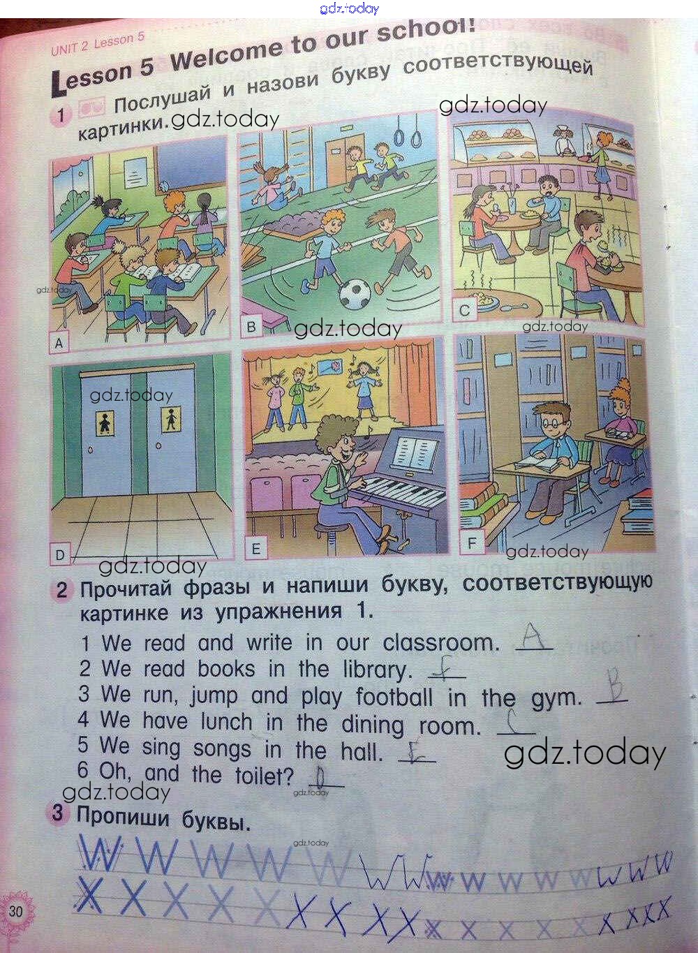 На страницах сайта gdz.today вы найдете учебный и вспомогательный материал, направленный на улучшения знаний школьной программы. ГДЗ - онлайн мир знаний Решение к части 1 30 Учебнику по Английскому языку для 1 класса Котлавская, Костюк Титул Millie 2014