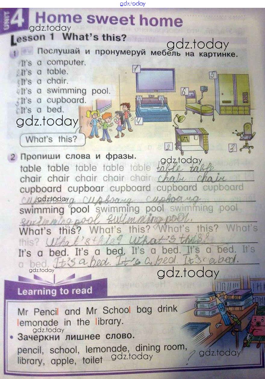 На страницах сайта gdz.today вы найдете учебный и вспомогательный материал, направленный на улучшения знаний школьной программы. ГДЗ - онлайн мир знаний Решение к части 1 55 Учебнику по Английскому языку для 1 класса Котлавская, Костюк Титул Millie 2014
