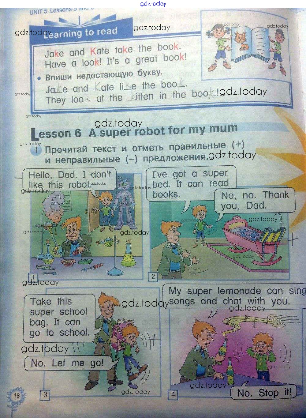 На страницах сайта gdz.today вы найдете учебный и вспомогательный материал, направленный на улучшения знаний школьной программы. ГДЗ - онлайн мир знаний Решение к части 2 18 Учебнику по Английскому языку для 1 класса Котлавская, Костюк Титул Millie 2014