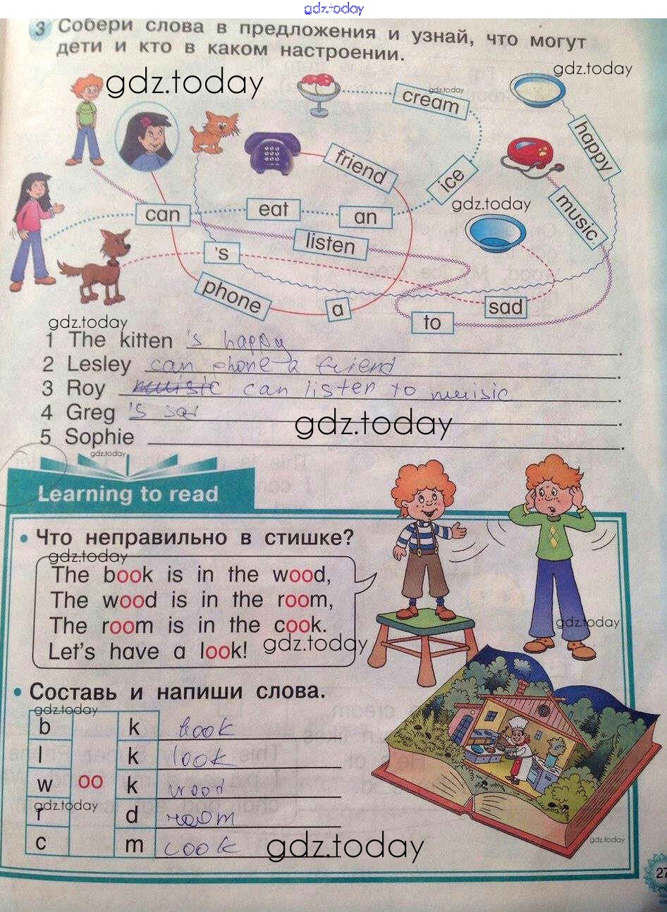 На страницах сайта gdz.today вы найдете учебный и вспомогательный материал, направленный на улучшения знаний школьной программы. ГДЗ - онлайн мир знаний Решение к части 2 27 Учебнику по Английскому языку для 1 класса Котлавская, Костюк Титул Millie 2014