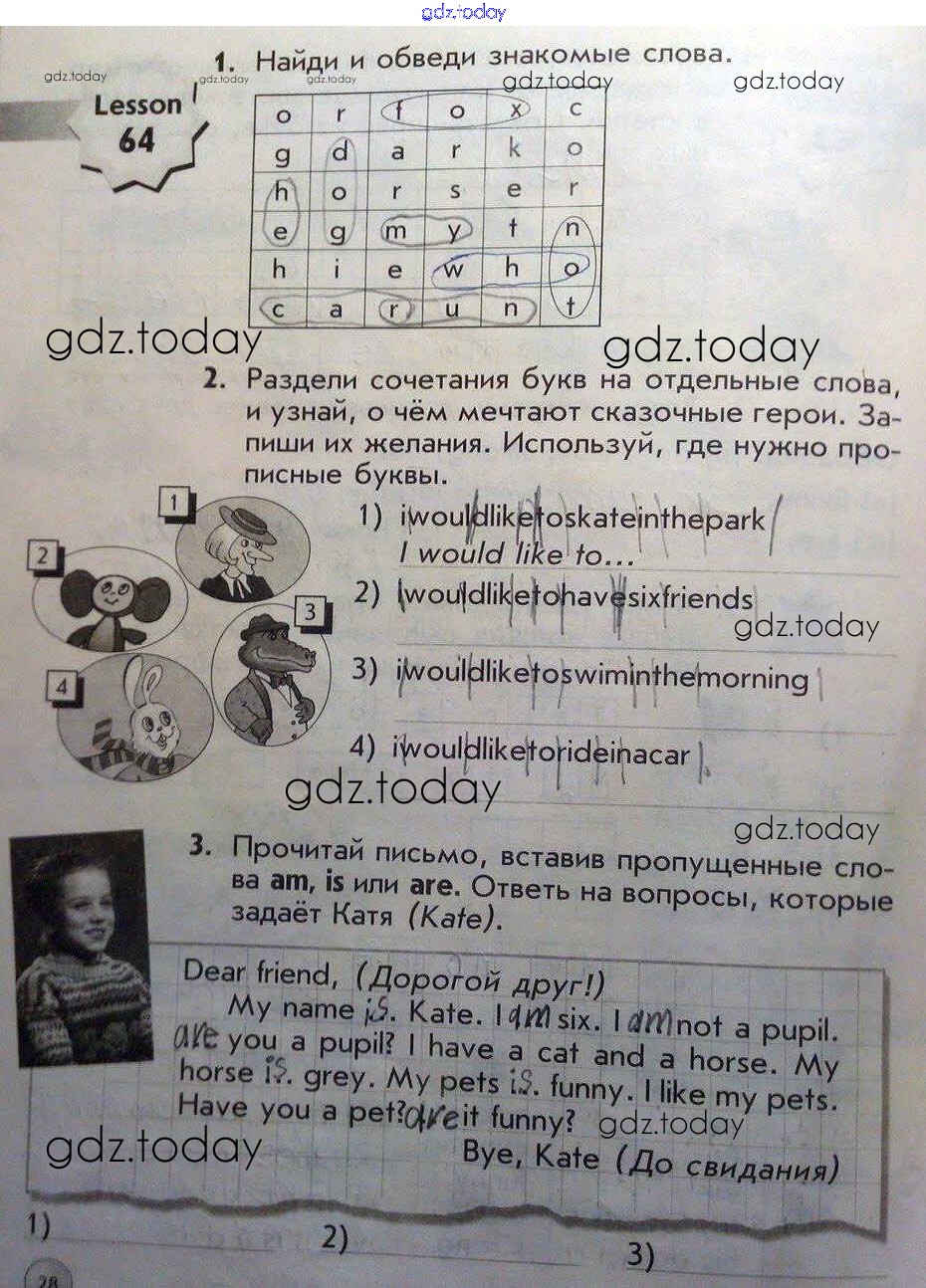 На страницах сайта gdz.today вы найдете учебный и вспомогательный материал, направленный на улучшения знаний школьной программы. ГДЗ - онлайн мир знаний Решение к части 2 (Страницы)  28 Рабочей тетради по Английскому языку для 1 класса Биболетова, Трубанева  Аст/Астрель Enjoy English 2015