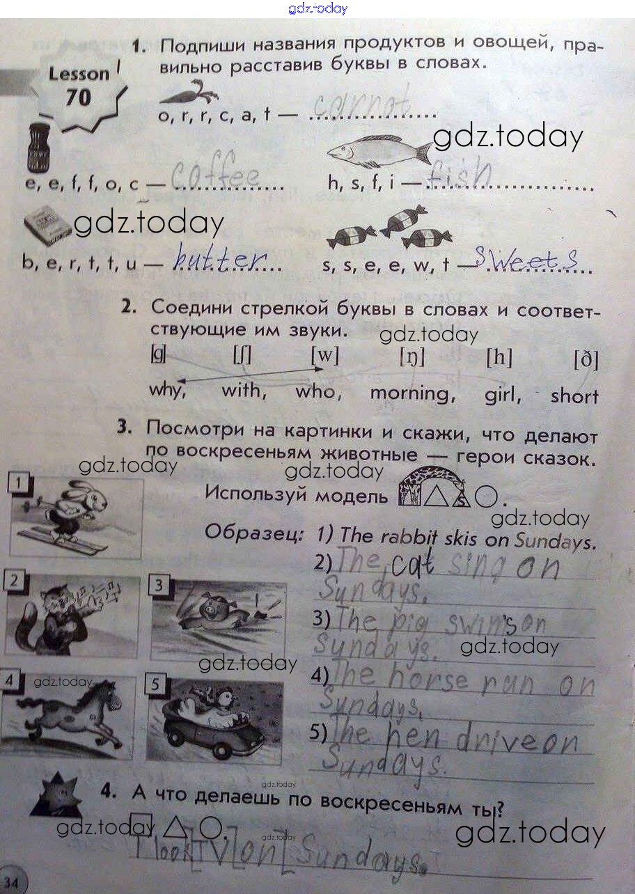 На страницах сайта gdz.today вы найдете учебный и вспомогательный материал, направленный на улучшения знаний школьной программы. ГДЗ - онлайн мир знаний Решение к части 2 (Страницы)  34 Рабочей тетради по Английскому языку для 1 класса Биболетова, Трубанева  Аст/Астрель Enjoy English 2015