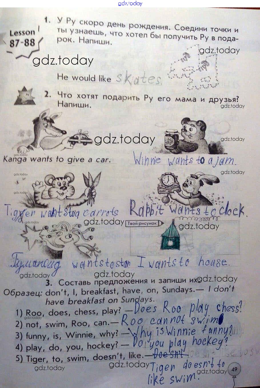 На страницах сайта gdz.today вы найдете учебный и вспомогательный материал, направленный на улучшения знаний школьной программы. ГДЗ - онлайн мир знаний Решение к части 2 (Страницы)  49 Рабочей тетради по Английскому языку для 1 класса Биболетова, Трубанева  Аст/Астрель Enjoy English 2015