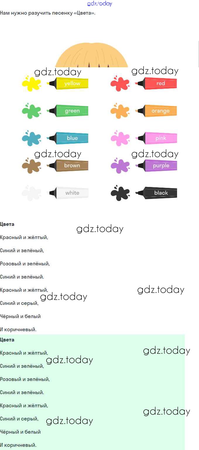 На страницах сайта gdz.today вы найдете учебный и вспомогательный материал, направленный на улучшения знаний школьной программы. ГДЗ - онлайн мир знаний Решение. Страницы  106 Учебнику по Английскому языку для 1 класса Верещагина, Притыкина  Просвещение Английский для школьников 2017