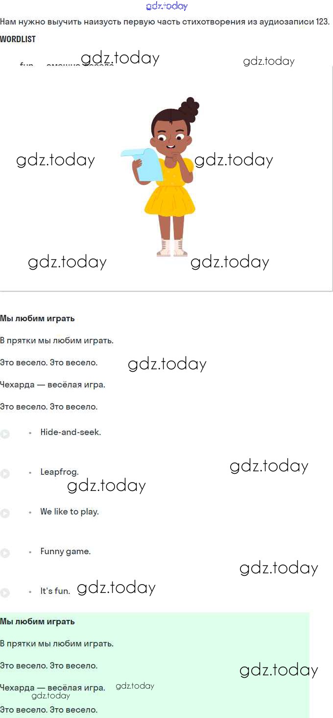 На страницах сайта gdz.today вы найдете учебный и вспомогательный материал, направленный на улучшения знаний школьной программы. ГДЗ - онлайн мир знаний Решение. Страницы  127 Учебнику по Английскому языку для 1 класса Верещагина, Притыкина  Просвещение Английский для школьников 2017