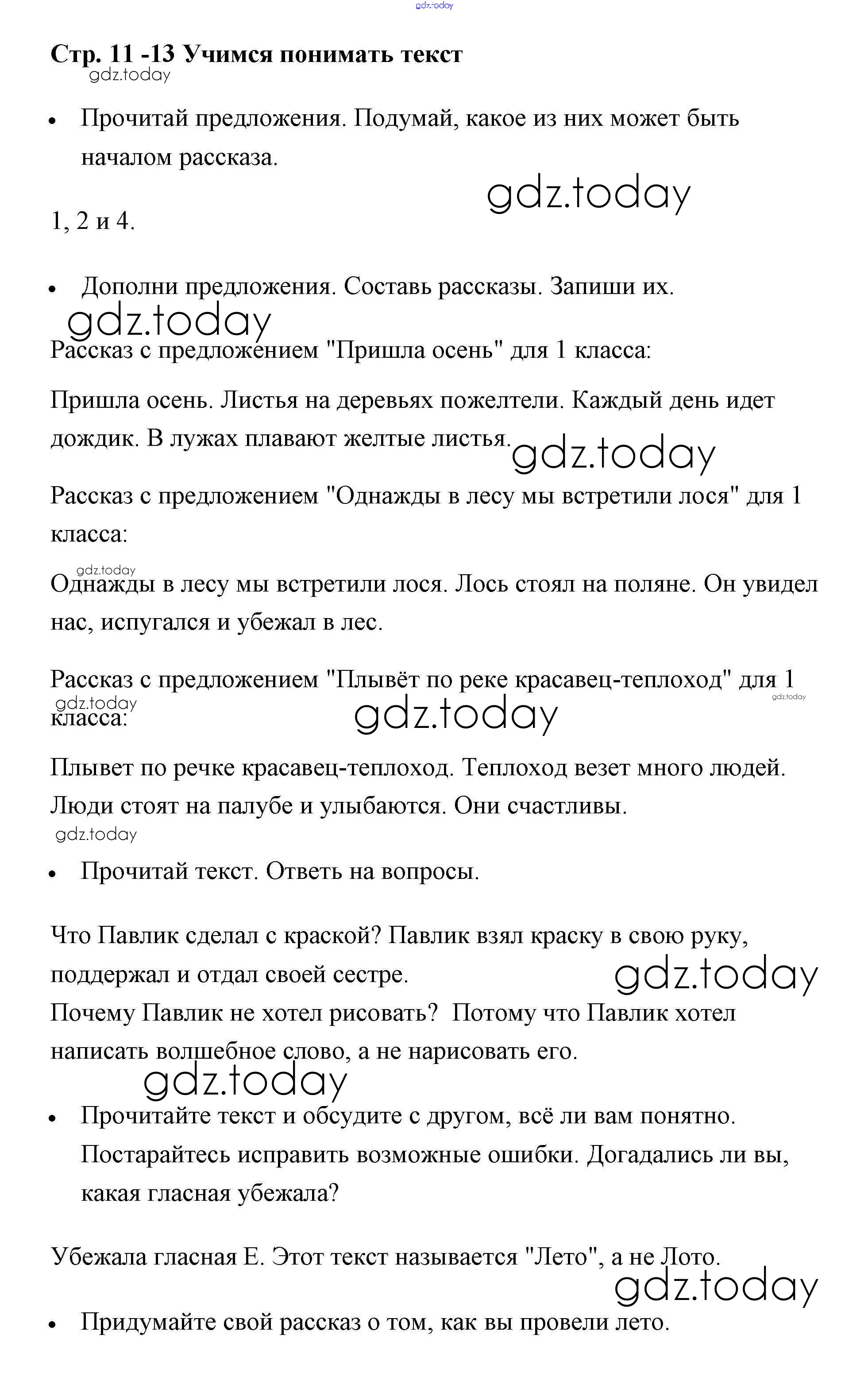 На страницах сайта gdz.today вы найдете учебный и вспомогательный материал, направленный на улучшения знаний школьной программы. ГДЗ - онлайн мир знаний Страницы (решение) 11-13 Рабочей тетради по Литературному чтению для 1 класса Бойкина, Виноградская Просвещение Школа России 2017