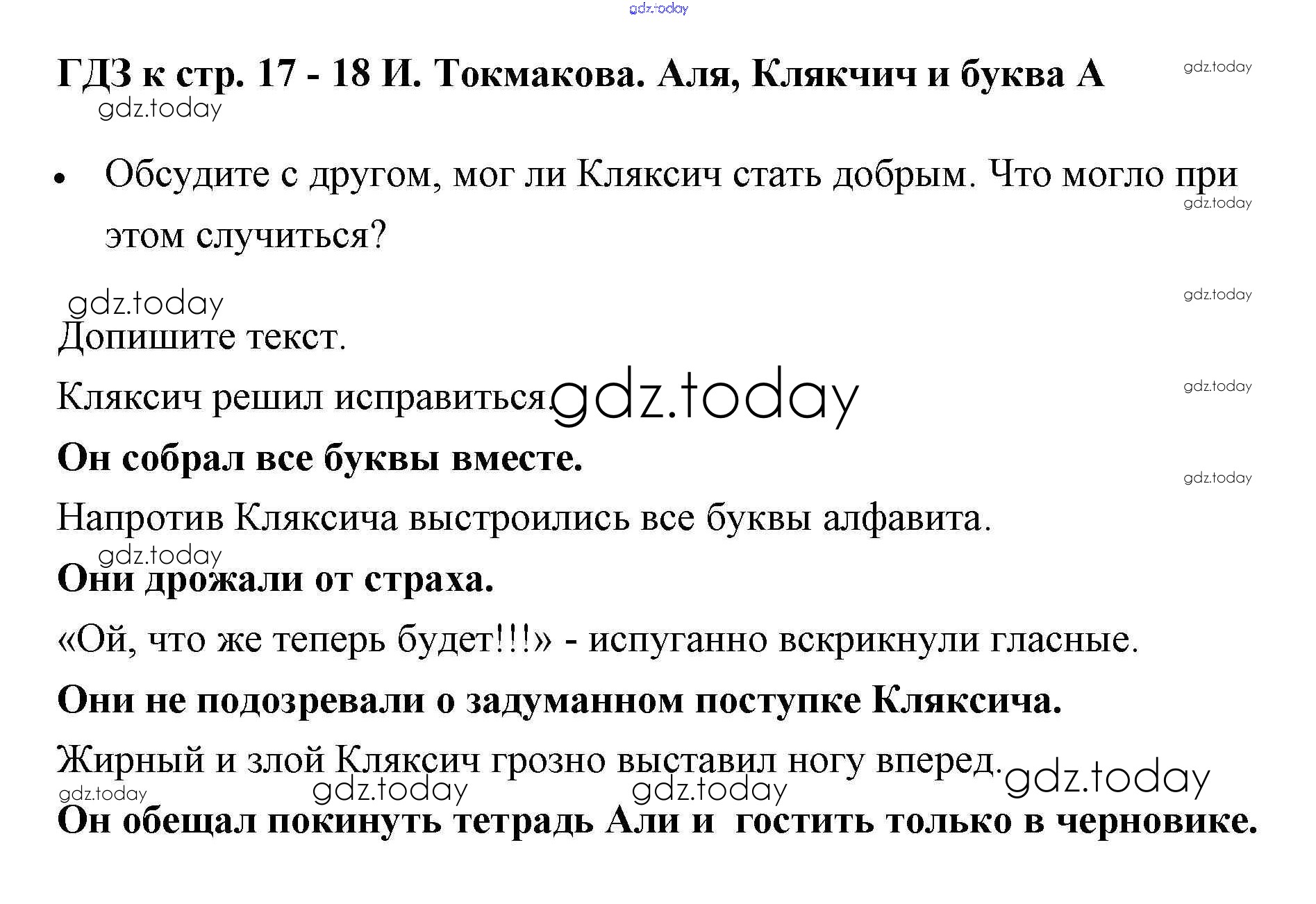 На страницах сайта gdz.today вы найдете учебный и вспомогательный материал, направленный на улучшения знаний школьной программы. ГДЗ - онлайн мир знаний Страницы (решение) 17-18 Рабочей тетради по Литературному чтению для 1 класса Бойкина, Виноградская Просвещение Школа России 2017