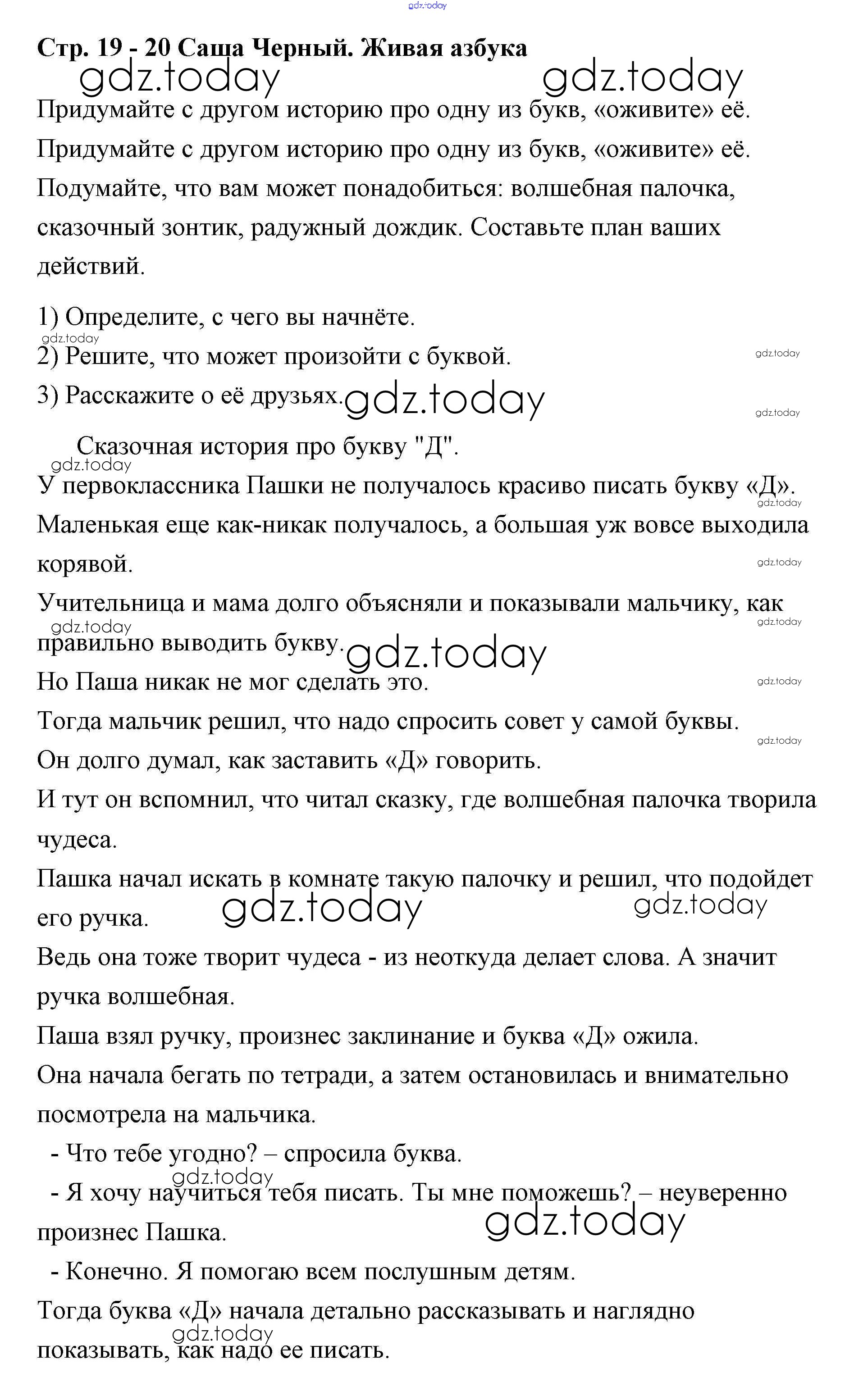 На страницах сайта gdz.today вы найдете учебный и вспомогательный материал, направленный на улучшения знаний школьной программы. ГДЗ - онлайн мир знаний Страницы (решение) 19-20 Рабочей тетради по Литературному чтению для 1 класса Бойкина, Виноградская Просвещение Школа России 2017