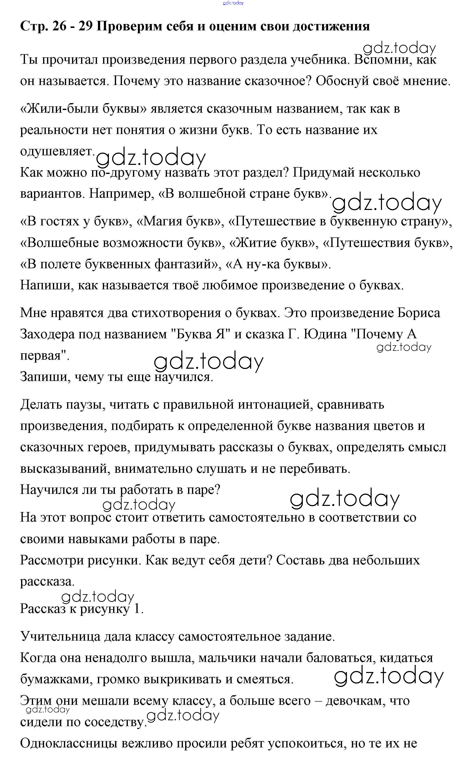 На страницах сайта gdz.today вы найдете учебный и вспомогательный материал, направленный на улучшения знаний школьной программы. ГДЗ - онлайн мир знаний Страницы (решение) 26-29 Рабочей тетради по Литературному чтению для 1 класса Бойкина, Виноградская Просвещение Школа России 2017