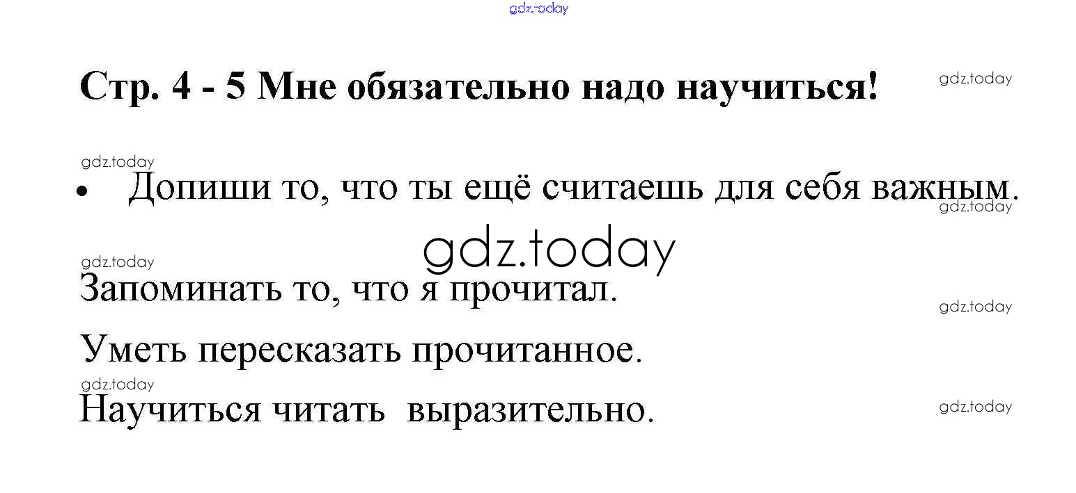 На страницах сайта gdz.today вы найдете учебный и вспомогательный материал, направленный на улучшения знаний школьной программы. ГДЗ - онлайн мир знаний Страницы (решение) 4-5 Рабочей тетради по Литературному чтению для 1 класса Бойкина, Виноградская Просвещение Школа России 2017