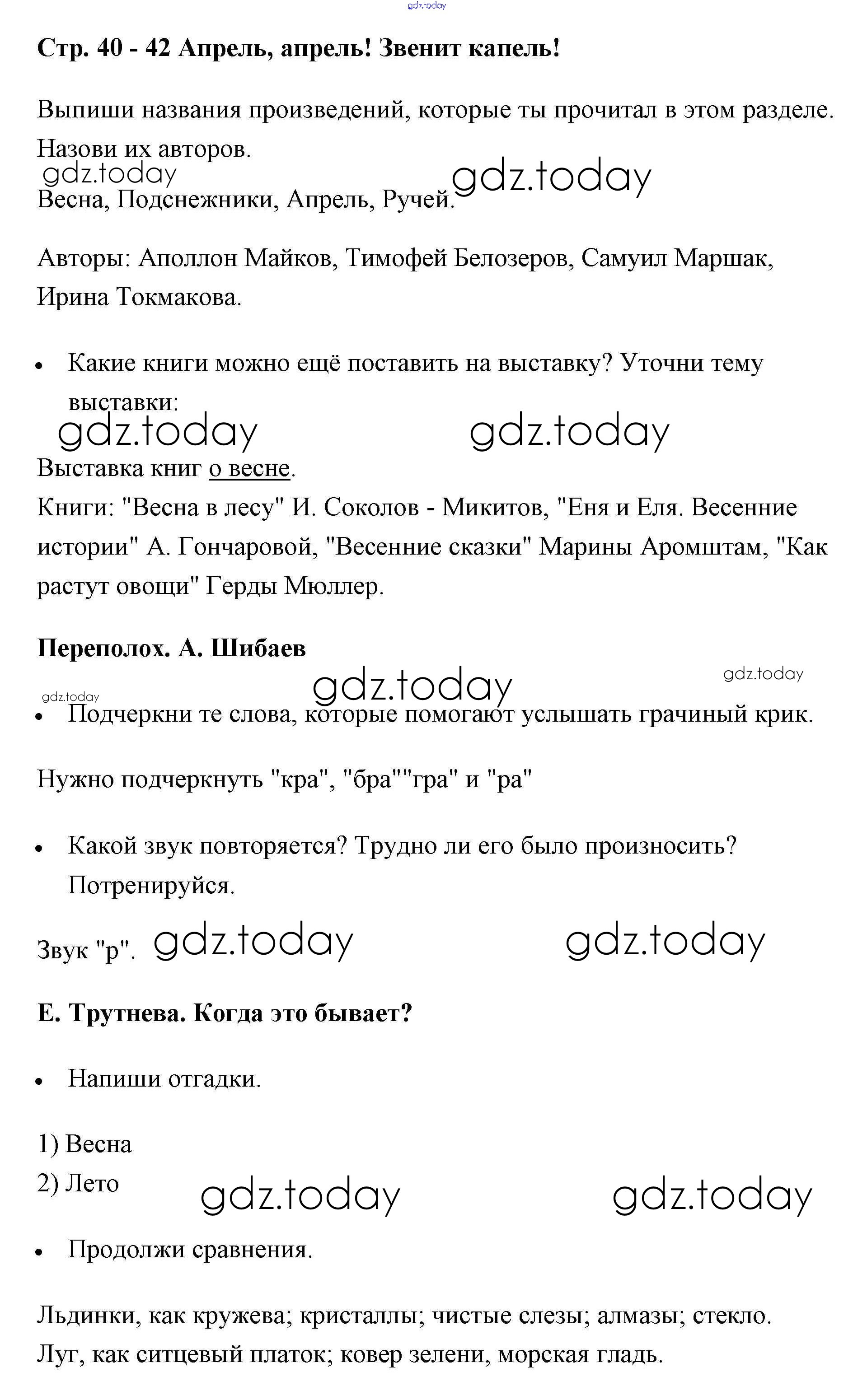На страницах сайта gdz.today вы найдете учебный и вспомогательный материал, направленный на улучшения знаний школьной программы. ГДЗ - онлайн мир знаний Страницы (решение) 40-42 Рабочей тетради по Литературному чтению для 1 класса Бойкина, Виноградская Просвещение Школа России 2017