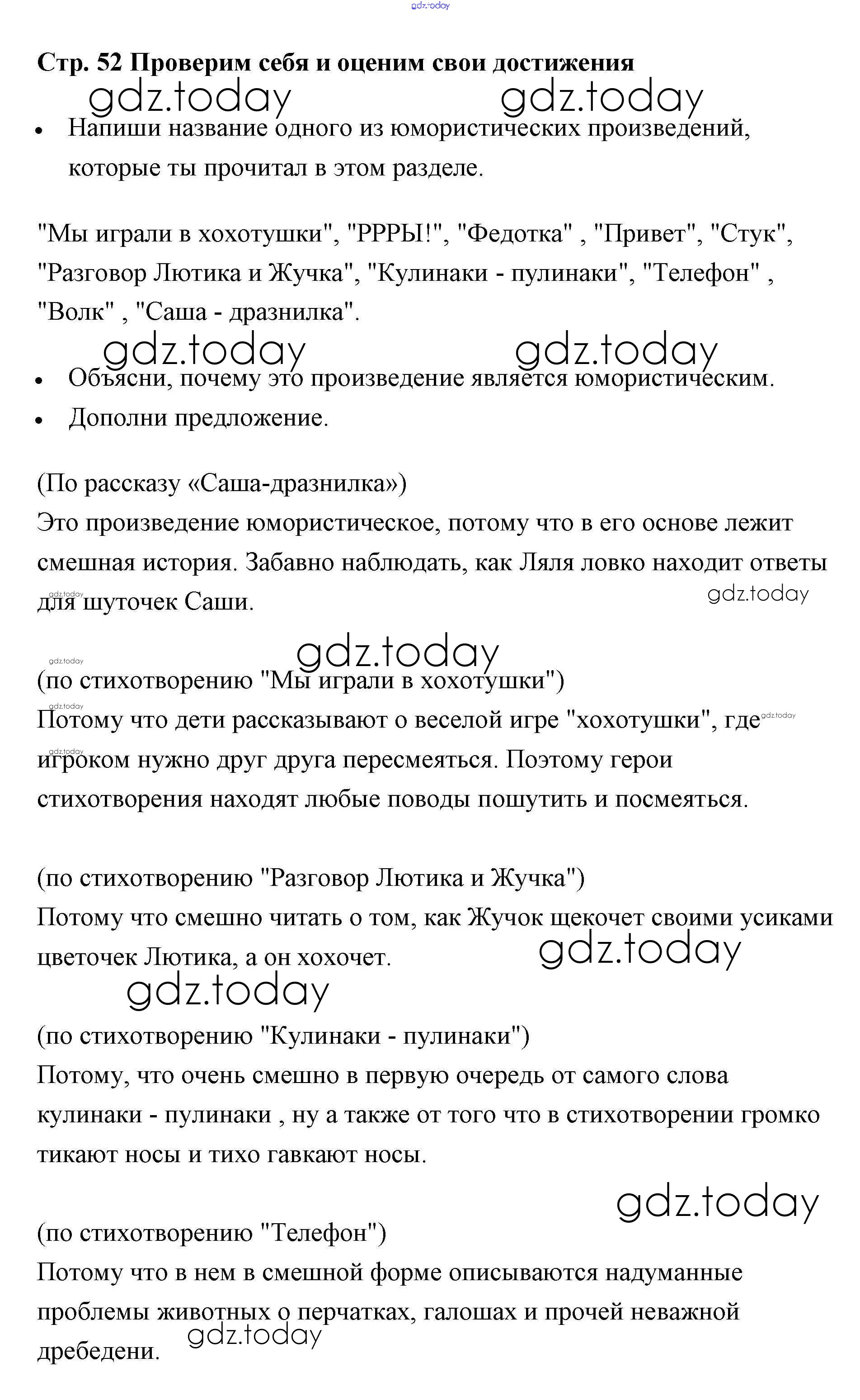 На страницах сайта gdz.today вы найдете учебный и вспомогательный материал, направленный на улучшения знаний школьной программы. ГДЗ - онлайн мир знаний Страницы (решение) 52 Рабочей тетради по Литературному чтению для 1 класса Бойкина, Виноградская Просвещение Школа России 2017
