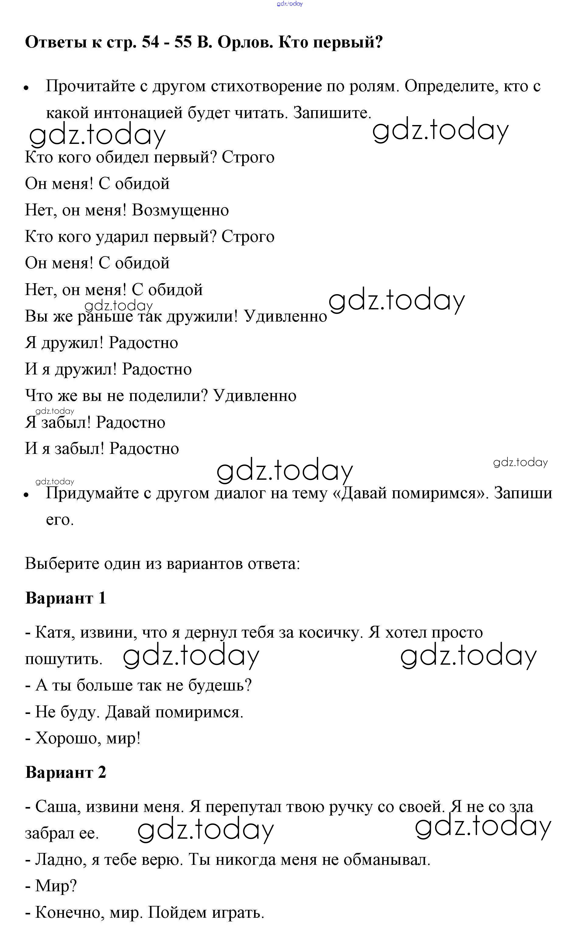 На страницах сайта gdz.today вы найдете учебный и вспомогательный материал, направленный на улучшения знаний школьной программы. ГДЗ - онлайн мир знаний Страницы (решение) 54-55 Рабочей тетради по Литературному чтению для 1 класса Бойкина, Виноградская Просвещение Школа России 2017
