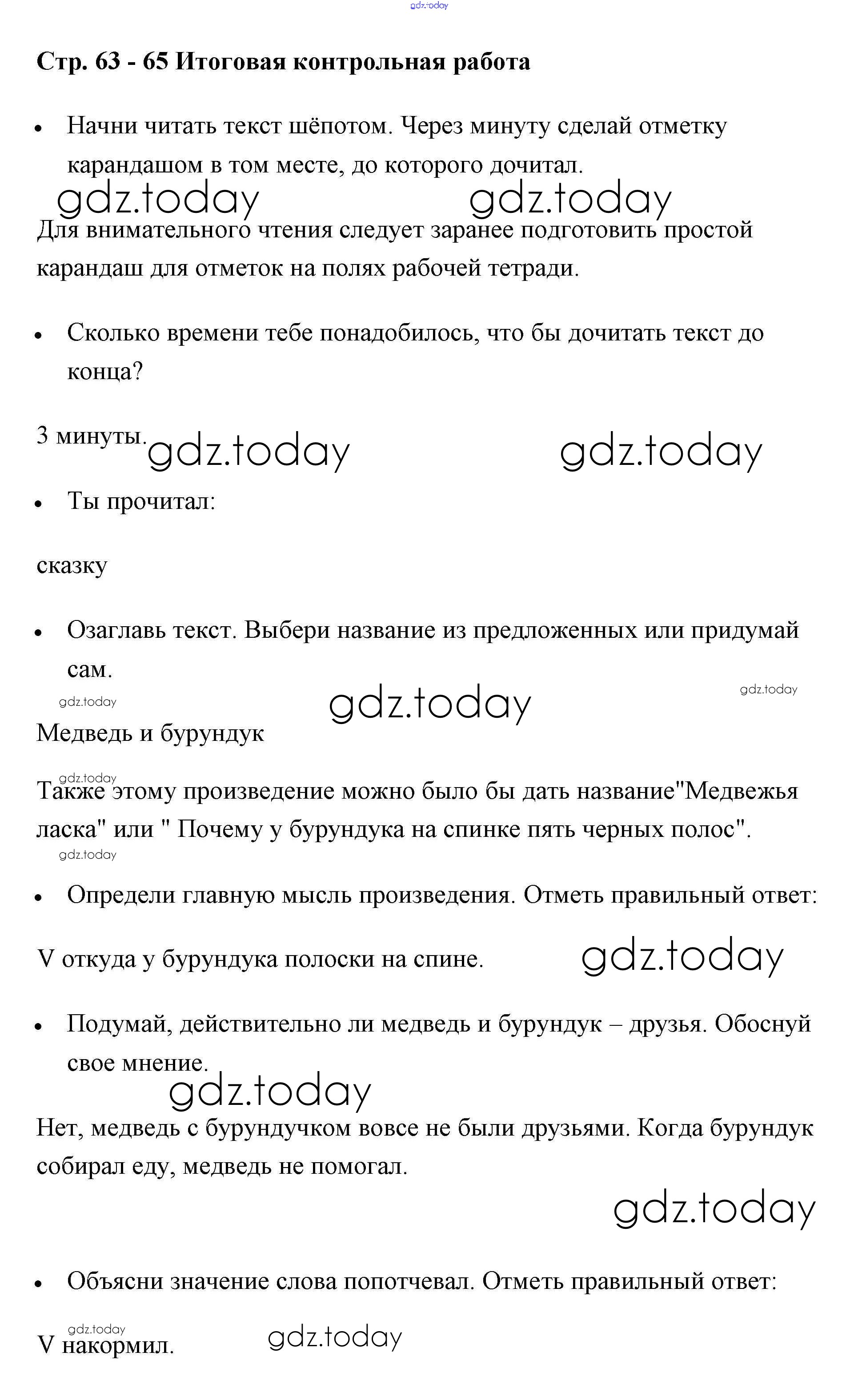 На страницах сайта gdz.today вы найдете учебный и вспомогательный материал, направленный на улучшения знаний школьной программы. ГДЗ - онлайн мир знаний Страницы (решение) 63-65 Рабочей тетради по Литературному чтению для 1 класса Бойкина, Виноградская Просвещение Школа России 2017