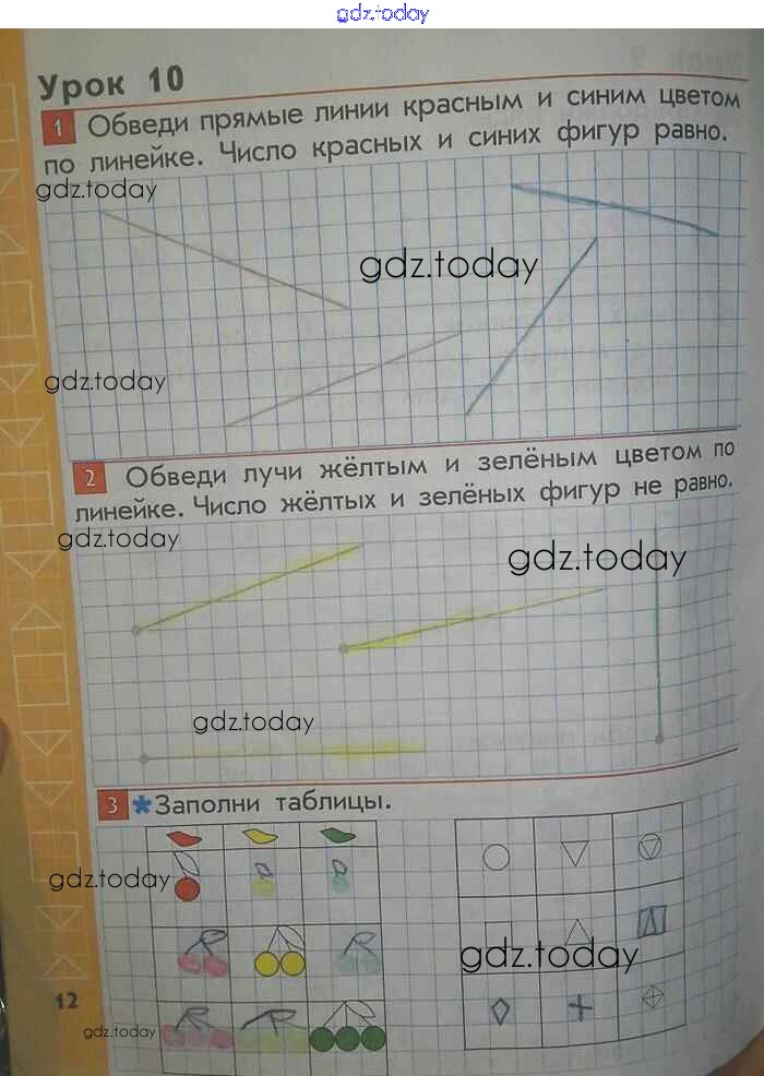 На страницах сайта gdz.today вы найдете учебный и вспомогательный материал, направленный на улучшения знаний школьной программы. ГДЗ - онлайн мир знаний Страницы (решение) 12 Рабочей тетради по Математике для 1 класса Демидова, Козлова Баласс Школа 2100 2015