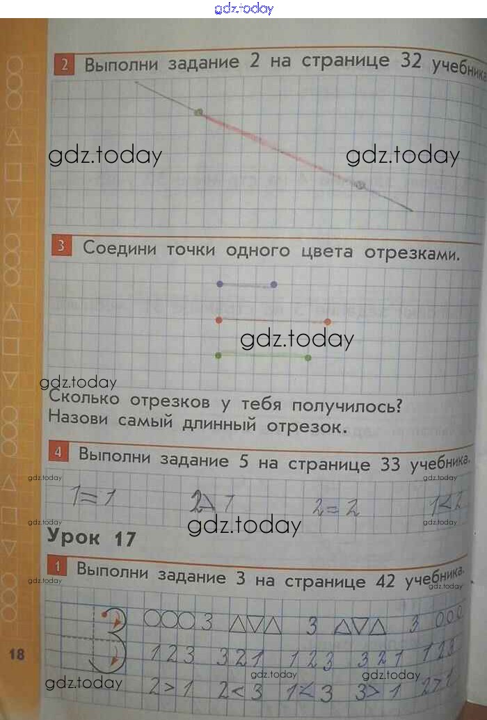 На страницах сайта gdz.today вы найдете учебный и вспомогательный материал, направленный на улучшения знаний школьной программы. ГДЗ - онлайн мир знаний Страницы (решение) 18 Рабочей тетради по Математике для 1 класса Демидова, Козлова Баласс Школа 2100 2015