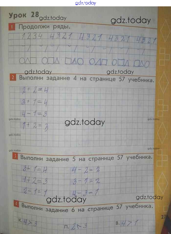 На страницах сайта gdz.today вы найдете учебный и вспомогательный материал, направленный на улучшения знаний школьной программы. ГДЗ - онлайн мир знаний Страницы (решение) 27 Рабочей тетради по Математике для 1 класса Демидова, Козлова Баласс Школа 2100 2015