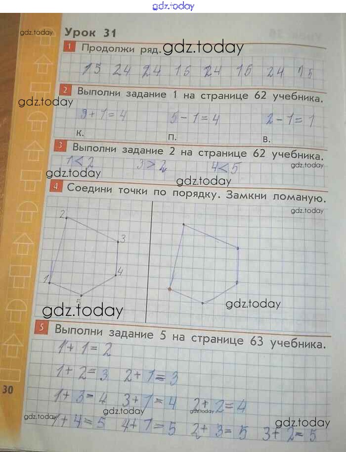 На страницах сайта gdz.today вы найдете учебный и вспомогательный материал, направленный на улучшения знаний школьной программы. ГДЗ - онлайн мир знаний Страницы (решение) 30 Рабочей тетради по Математике для 1 класса Демидова, Козлова Баласс Школа 2100 2015