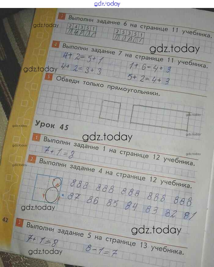 На страницах сайта gdz.today вы найдете учебный и вспомогательный материал, направленный на улучшения знаний школьной программы. ГДЗ - онлайн мир знаний Страницы (решение) 42 Рабочей тетради по Математике для 1 класса Демидова, Козлова Баласс Школа 2100 2015
