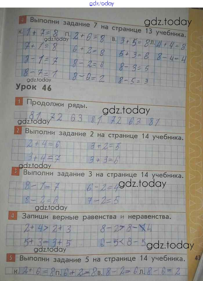 На страницах сайта gdz.today вы найдете учебный и вспомогательный материал, направленный на улучшения знаний школьной программы. ГДЗ - онлайн мир знаний Страницы (решение) 43 Рабочей тетради по Математике для 1 класса Демидова, Козлова Баласс Школа 2100 2015