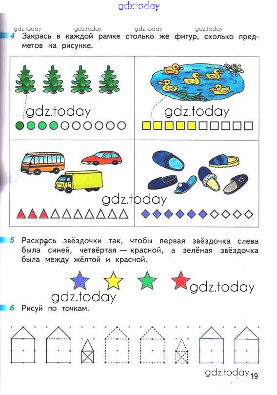 На страницах сайта gdz.today вы найдете учебный и вспомогательный материал, направленный на улучшения знаний школьной программы. ГДЗ - онлайн мир знаний Решение к части 1 (страницы) 19 Рабочей тетради по Математике для 1 класса Дорофеев, Миракова Просвещение Перспектива 2016