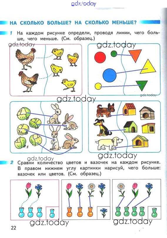 На страницах сайта gdz.today вы найдете учебный и вспомогательный материал, направленный на улучшения знаний школьной программы. ГДЗ - онлайн мир знаний Решение к части 1 (страницы) 22 Рабочей тетради по Математике для 1 класса Дорофеев, Миракова Просвещение Перспектива 2016