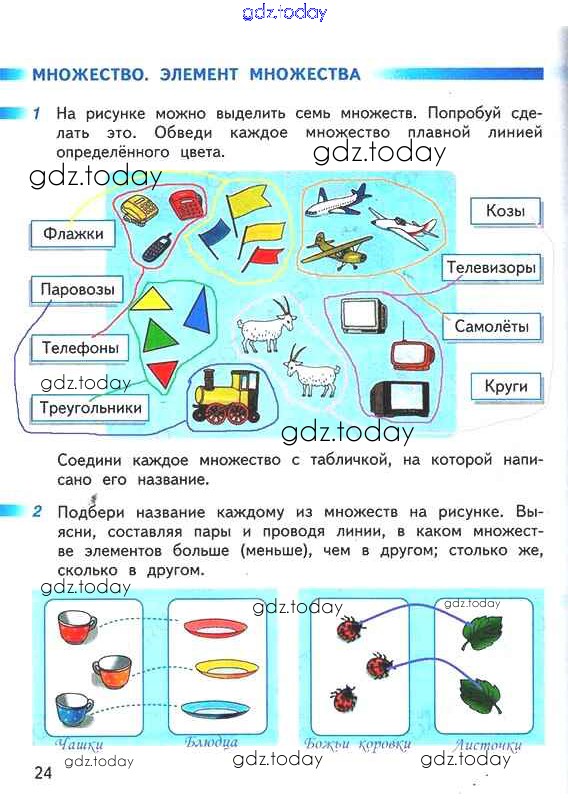На страницах сайта gdz.today вы найдете учебный и вспомогательный материал, направленный на улучшения знаний школьной программы. ГДЗ - онлайн мир знаний Решение к части 1 (страницы) 24 Рабочей тетради по Математике для 1 класса Дорофеев, Миракова Просвещение Перспектива 2016