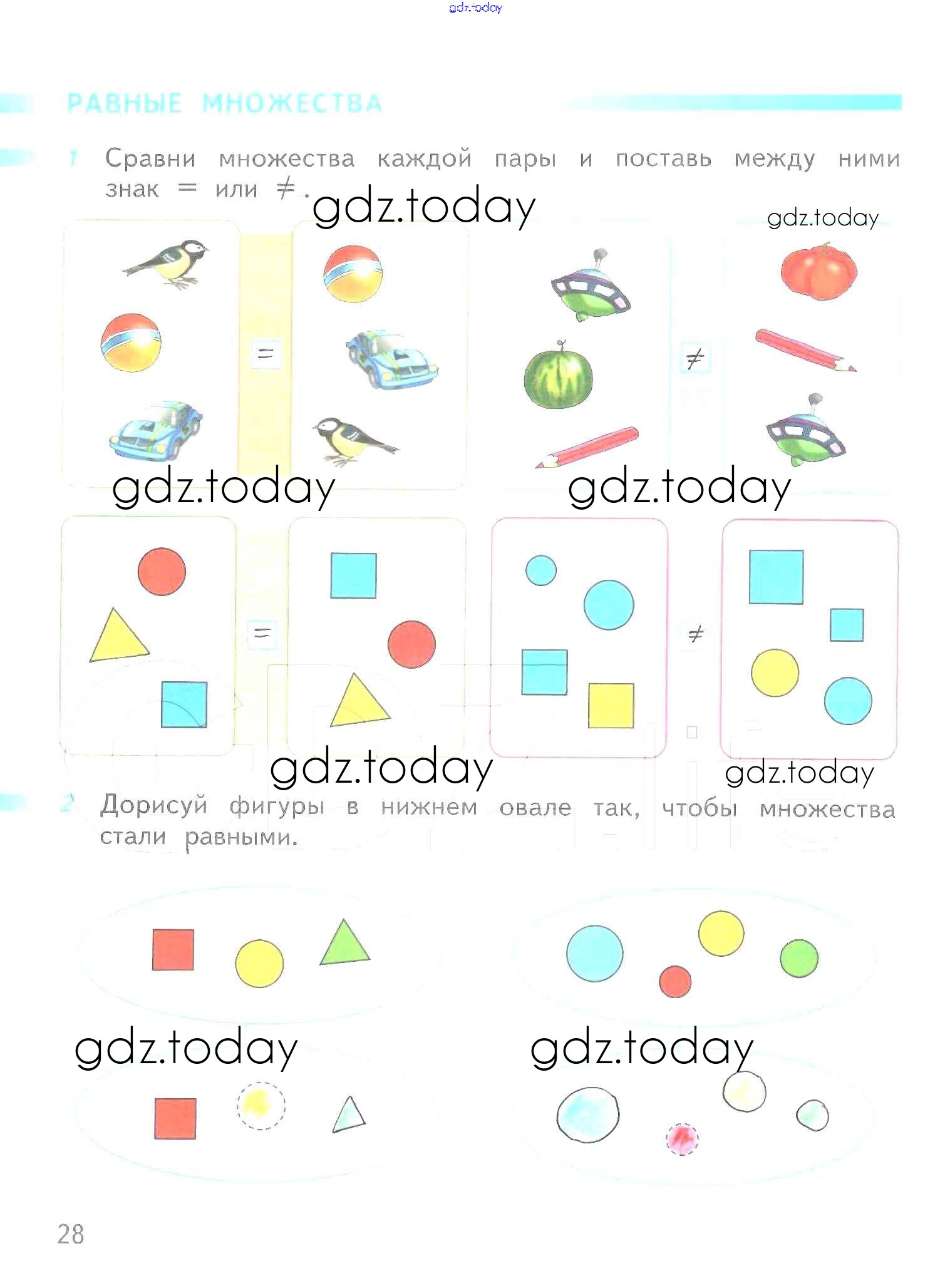 На страницах сайта gdz.today вы найдете учебный и вспомогательный материал, направленный на улучшения знаний школьной программы. ГДЗ - онлайн мир знаний Решение к части 1 (страницы) 28 Рабочей тетради по Математике для 1 класса Дорофеев, Миракова Просвещение Перспектива 2016