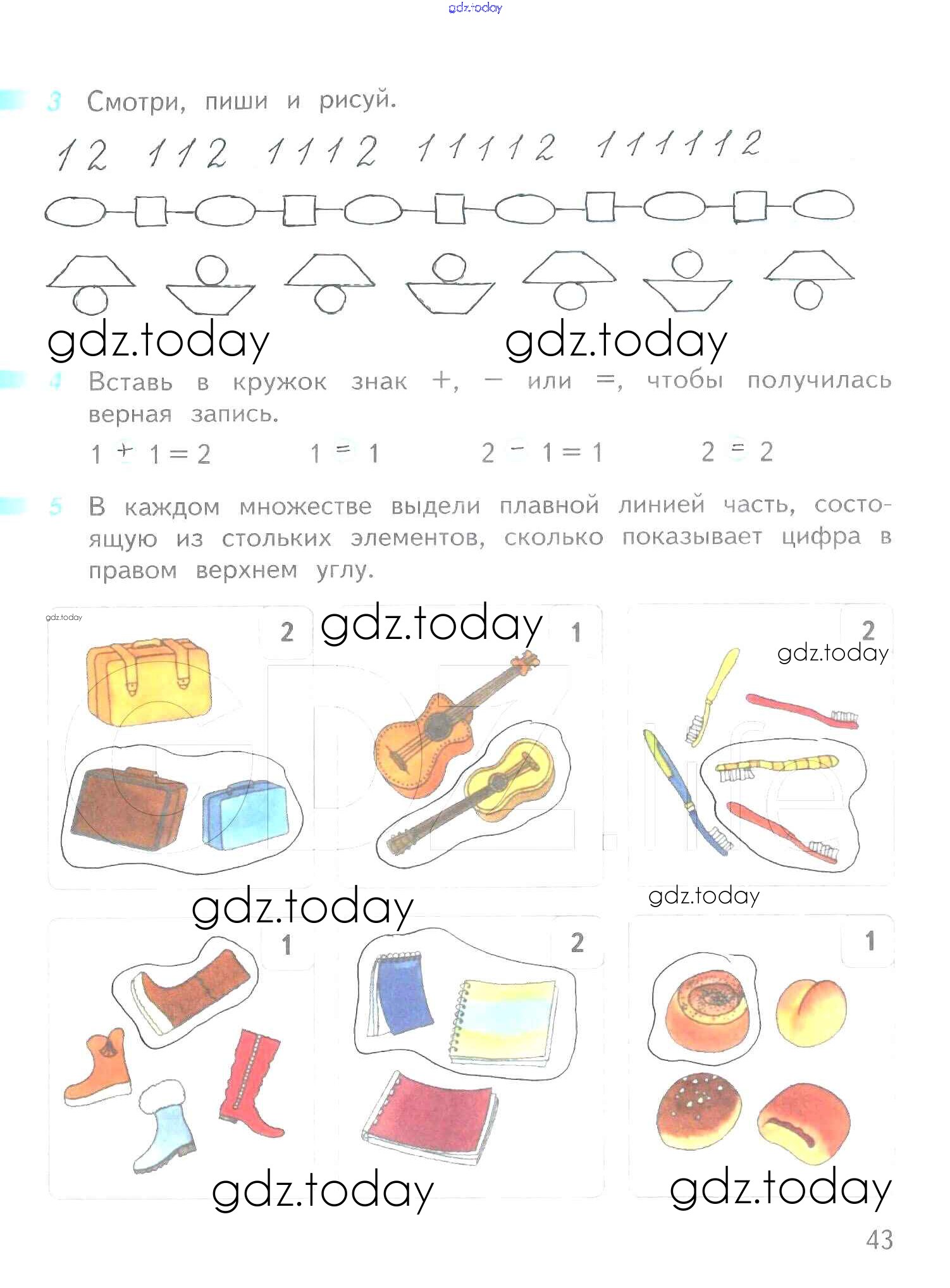 Ответы к Решение к части 1 (страницы) 43 Рабочей тетради по Математике для 1 класса Дорофеев, Миракова Просвещение Перспектива 2016