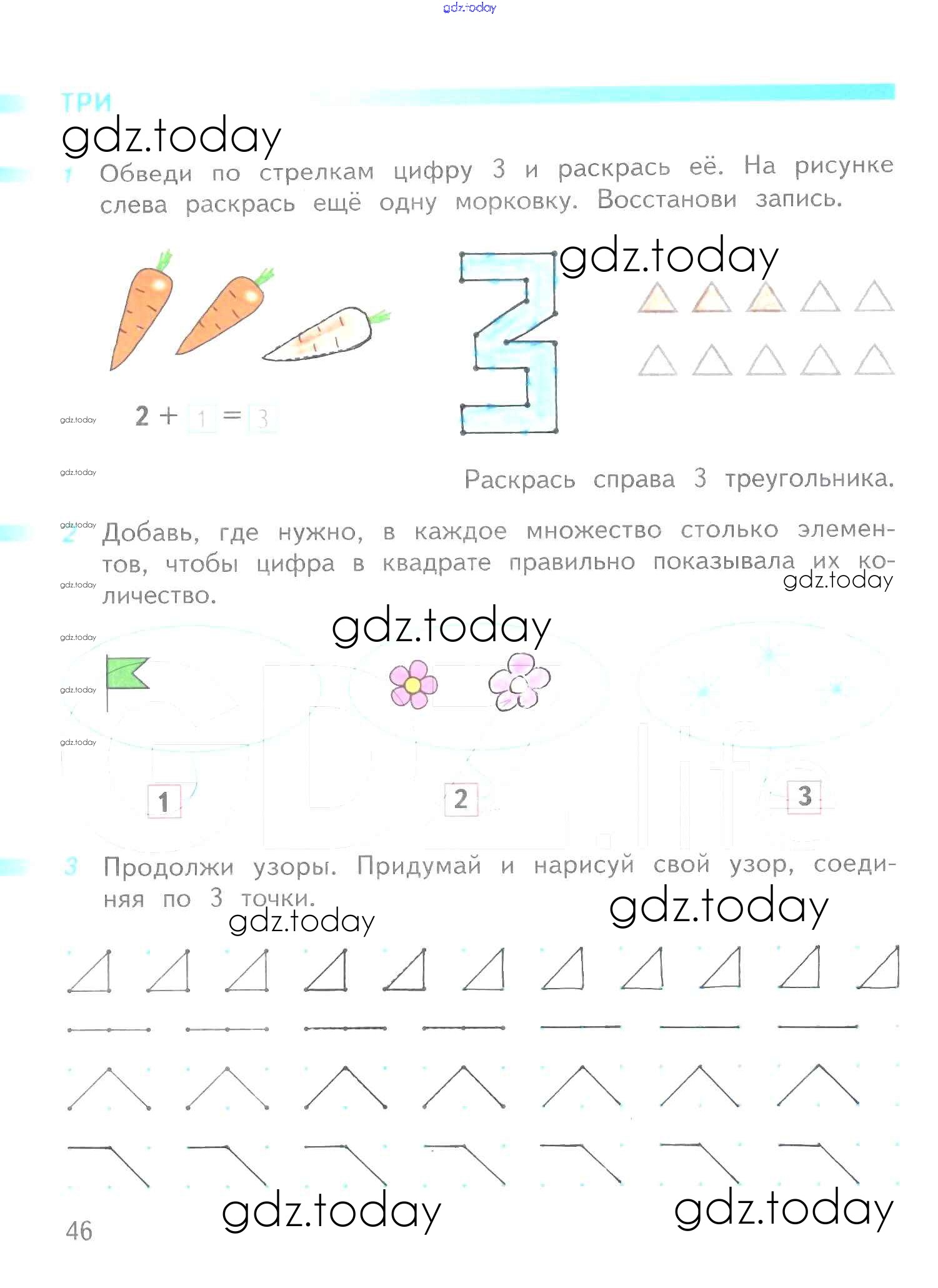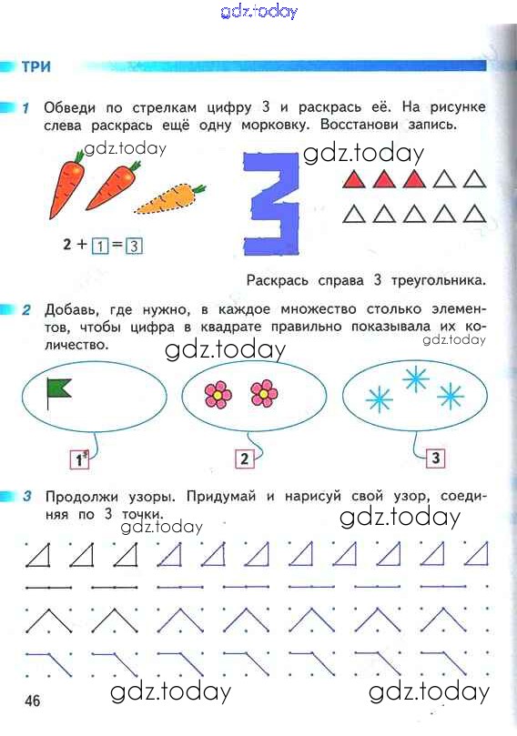 На страницах сайта gdz.today вы найдете учебный и вспомогательный материал, направленный на улучшения знаний школьной программы. ГДЗ - онлайн мир знаний Решение к части 1 (страницы) 46 Рабочей тетради по Математике для 1 класса Дорофеев, Миракова Просвещение Перспектива 2016
