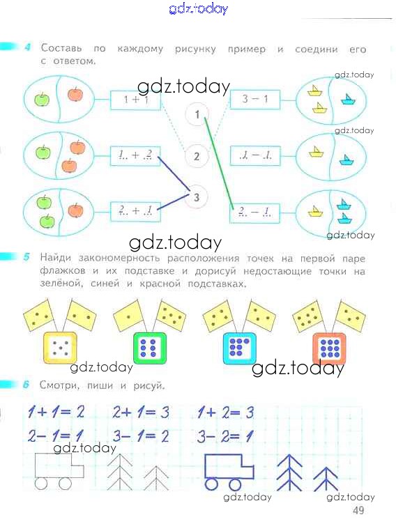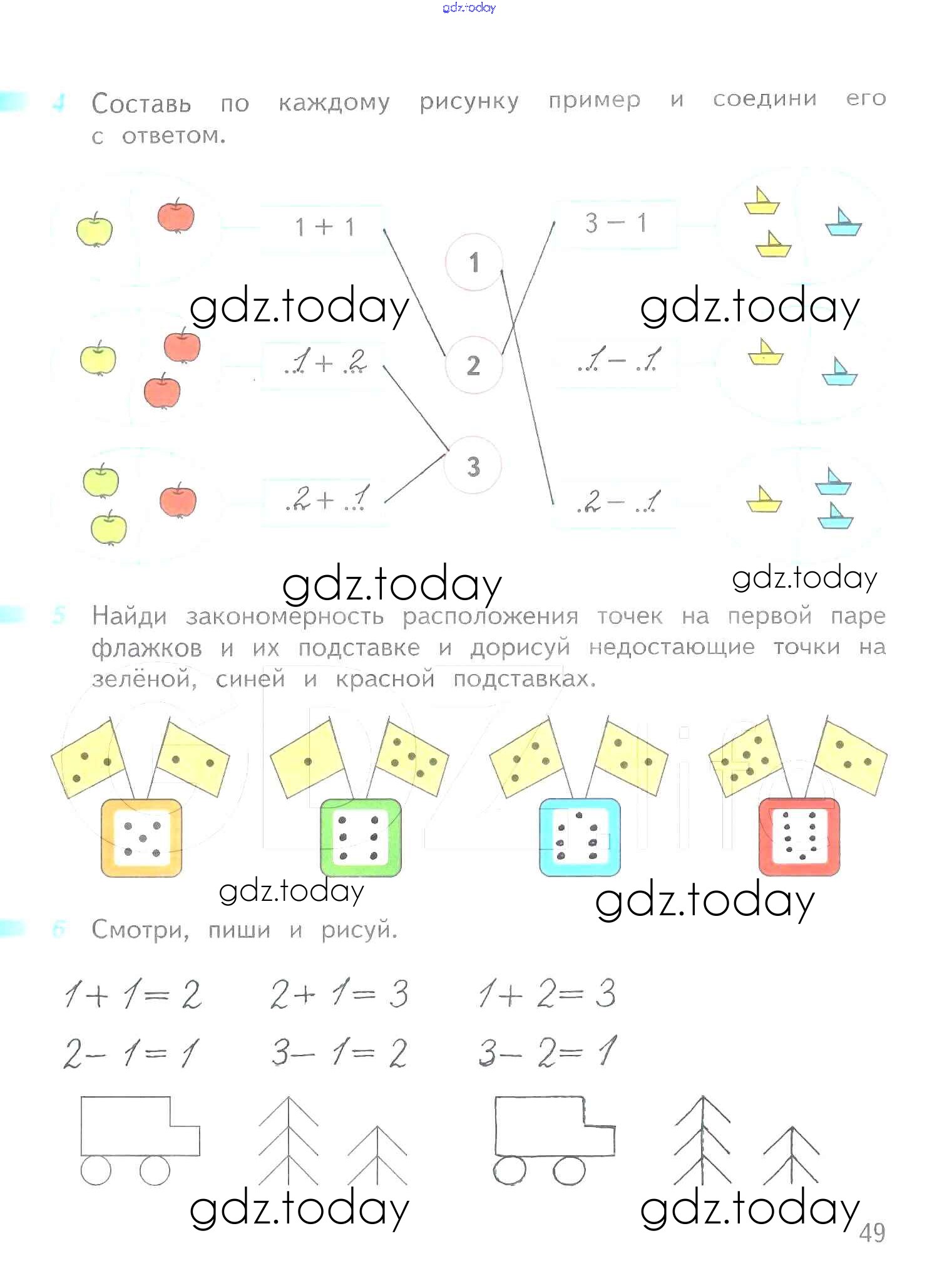 На страницах сайта gdz.today вы найдете учебный и вспомогательный материал, направленный на улучшения знаний школьной программы. ГДЗ - онлайн мир знаний Решение к части 1 (страницы) 49 Рабочей тетради по Математике для 1 класса Дорофеев, Миракова Просвещение Перспектива 2016