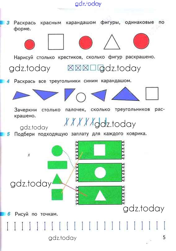 На страницах сайта gdz.today вы найдете учебный и вспомогательный материал, направленный на улучшения знаний школьной программы. ГДЗ - онлайн мир знаний Решение к части 1 (страницы) 5 Рабочей тетради по Математике для 1 класса Дорофеев, Миракова Просвещение Перспектива 2016