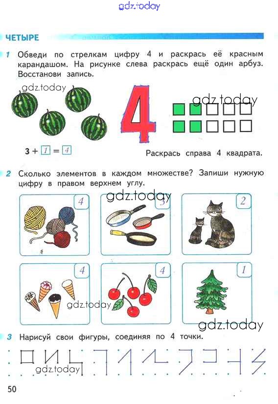 На страницах сайта gdz.today вы найдете учебный и вспомогательный материал, направленный на улучшения знаний школьной программы. ГДЗ - онлайн мир знаний Решение к части 1 (страницы) 50 Рабочей тетради по Математике для 1 класса Дорофеев, Миракова Просвещение Перспектива 2016