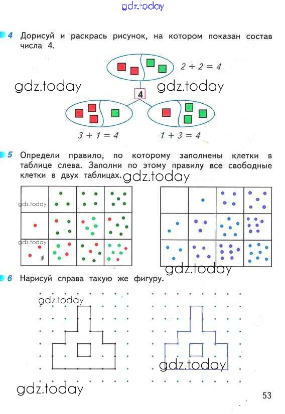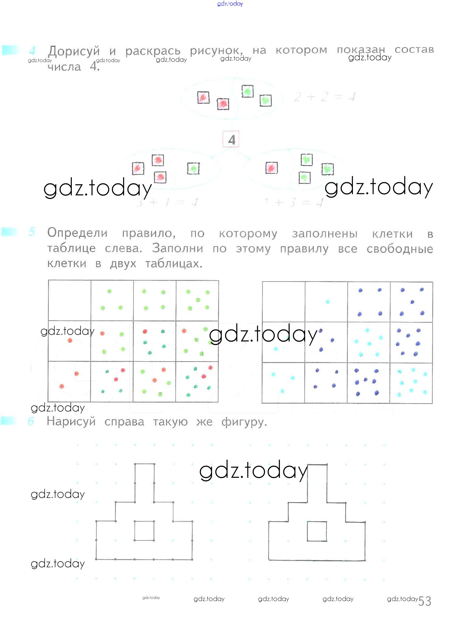 На страницах сайта gdz.today вы найдете учебный и вспомогательный материал, направленный на улучшения знаний школьной программы. ГДЗ - онлайн мир знаний Решение к части 1 (страницы) 53 Рабочей тетради по Математике для 1 класса Дорофеев, Миракова Просвещение Перспектива 2016